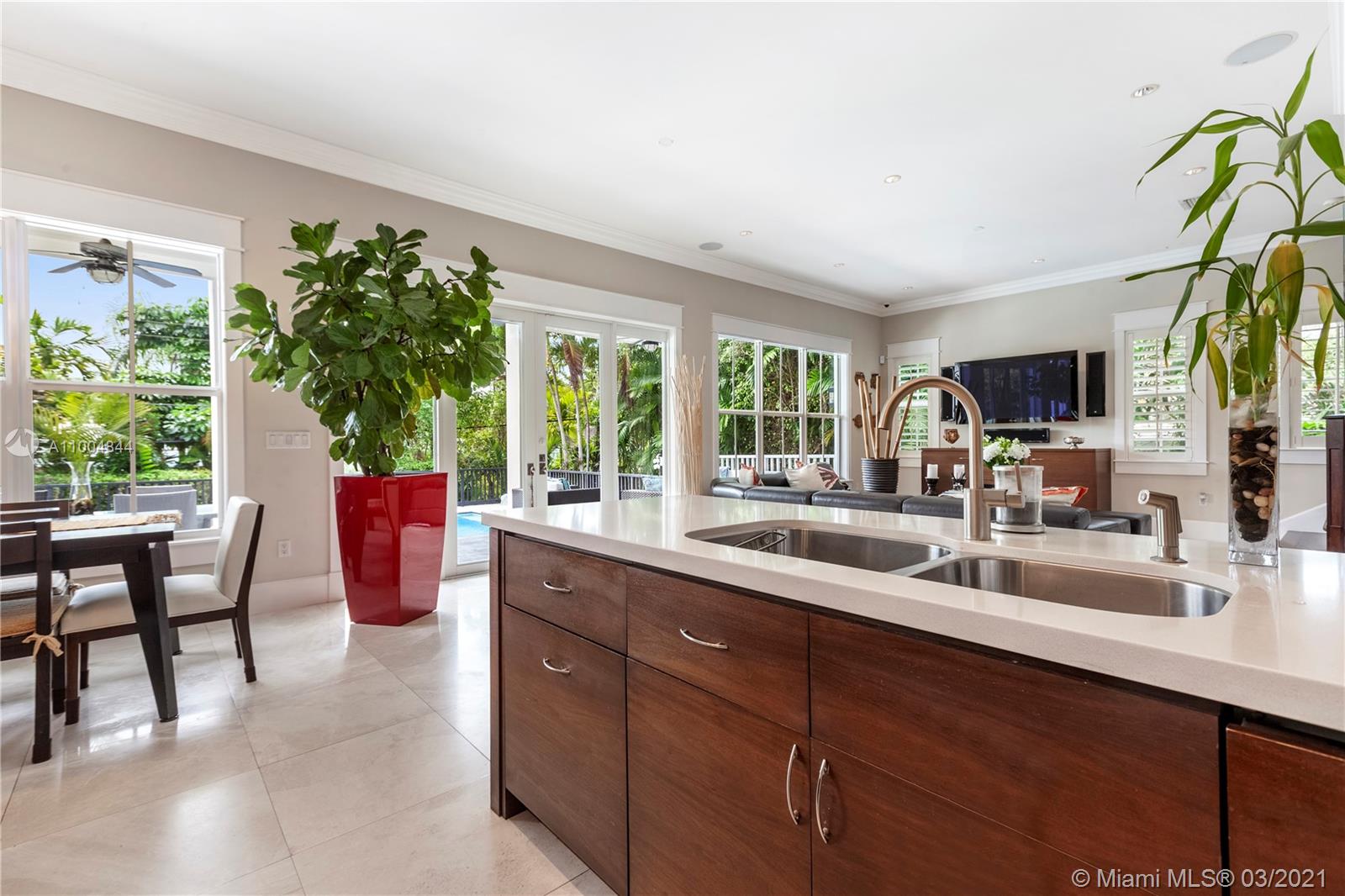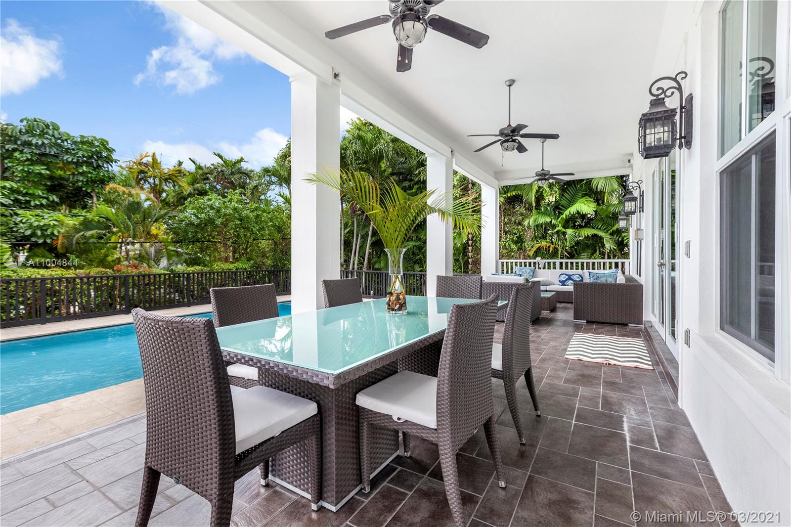 This stunning Plantation Style estate stands apart from all the other homes. Custom built, the details are endless including Floridian cream marble & Brazilian walnut wood floors,11' height ceilings, finest custom millwork, white pine crown molding, custom made Hector & Hector kitchen, Subzero/wolf appliances to mention a few. Spacious & Bright formal living and dinning room, solid wood staircase and generous family room that opens to the captivating kitchen. Upstairs 3 suites that include a comfortable master suite. Located in a cul-de-sac this house has it all. Large two car garage, charming balconies and incredible location. Biking distance to Carrollton ,Ransom and many other incredible schools. Walking distance to Sunrise Park.