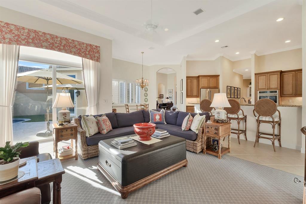 This 3258 SQ FT 3BR/3.5BA+Den ''Miramonte'' was spectacularly renovated in 2020/2021 and features brand new IMPACT GLASS throughout the entire home. The backyard was completely reimagined and now features all new Travertine marble pavers and turf, a refurbished pool with water feature ,and a newly screened-in lanai. The resort-like pool receives sun for much of the day due to its Southern exposure. Private golf course views offer a beautiful backdrop, while offering immense privacy. Inside, every room has been thoughtfully and meticulously updated. The elegant cook's kitchen boasts brand new GE Cafe appliances and an extra large pantry, rarely seen at this price point. The brand new dry bar features Quartz countertops, a Mother of Pearl back splash and new wine cooler.