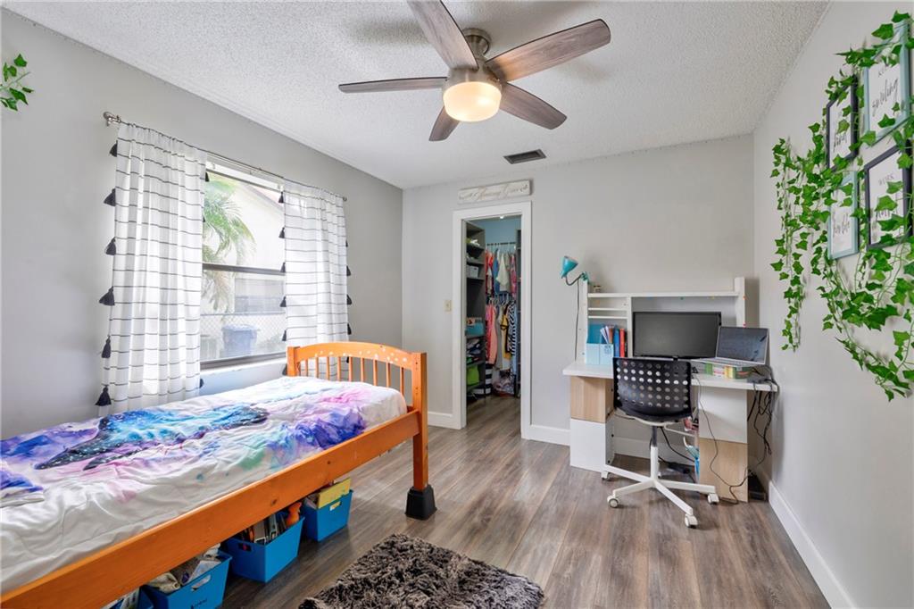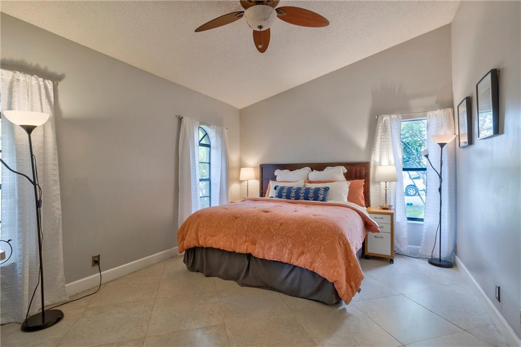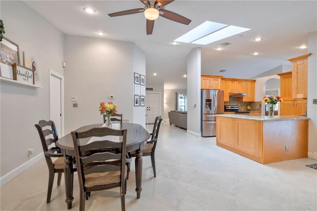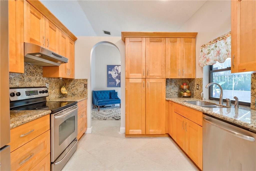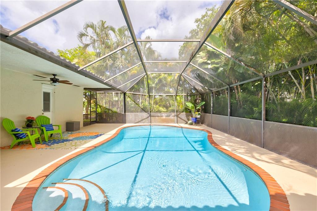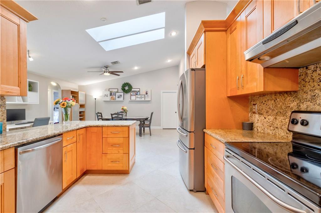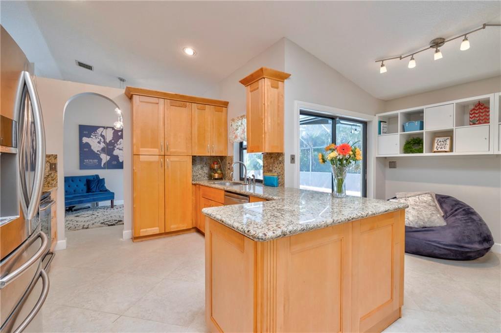 Don't miss this beautiful pool home sitting on a large fenced corner tree lined street centrally located near parks, library, restaurants & shops yet tucked away in a lovely neighborhood! The spacious, open floor plan with 24x24 neutral light tile is well laid out allowing the public space areas to be very flexible to owners' preference. Vaulted knock down ceilings, pretty arched windows & newer skylight draws in nice light along with slider doors providing lovely views to the private screened pool area, so inviting for Florida outdoor living and bbq. NEW Kitchen has maple wood Shaker-style soft-close cabinets, granite counters/backsplash, newer stainless steel appliances. NEW A/C 2020. NEW panel doors; NEW garage door opener; NEW flooring Beds 2/4; See attached Home Feature List for more.