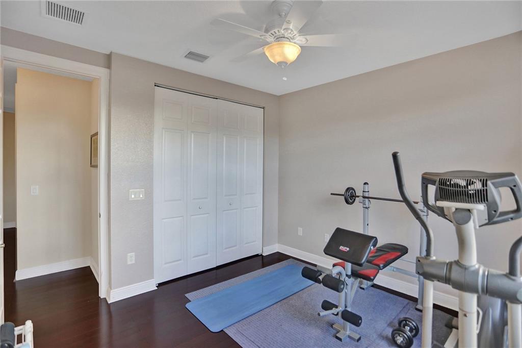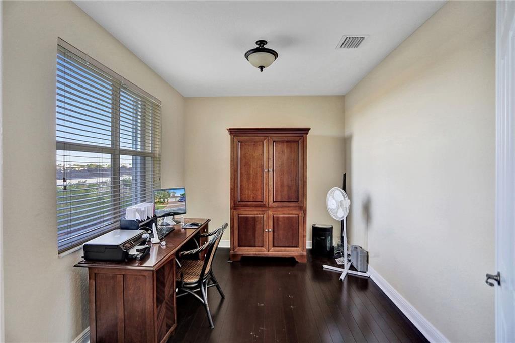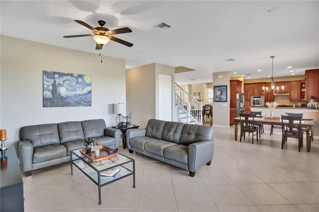 Gated Sunset Falls - 2009 construction; Immaculate & ready to be your new home; 5bedroom 3bath plus den; Enjoy the beautiy of this tastefully appointed two story home; one full bedroom and full bathroom downstairs; Four bedrooms plus den upstairs; Master suite is upstairs with an adjoining den; This den was a 6th bedroom option w/ builder;no carpet;neutral tile downstairs;bamboo wood flooring upstairs;spacious closets everywhere;gourmet kitchen wood cabinets and granite top;under AC laundry room;3car garage;covered patio; large laundry room under air;fully fenced; Accordion shutters throughout;room for pool;Community has clubhouse,fitness center, pool,kiddie pool,tennis,basketball,shaded tot lot;Great schools, shopping, hospitals....centrally located close to I-75 for commute; 2 AC systems