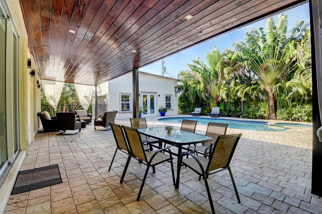 One of a kind masterpiece, resort feel house. This custom re-built 2015 East Boca pool home pool situated on an over-sized lot offers 5 bedrooms, 4 full baths plus 1 office/fitness room with the master bedroom downstairs. Features include underground pipes replaced with pvc, led lighting, 11 ft ceilings, 3 zone ac, all block and concrete exterior, impact windows, heated pool and jacuzzi, separate 600 sq. ft garage structure with high ceilings, iphone enabled cameras, central vacuum system. The upstairs offers a large second living area along with bedroom and bath, great for a guest suite with a separate entrance. You'll enjoy the large covered patio surrounded by Eureka Palms for privacy creating the resort tropical lifestyle feel all day long.