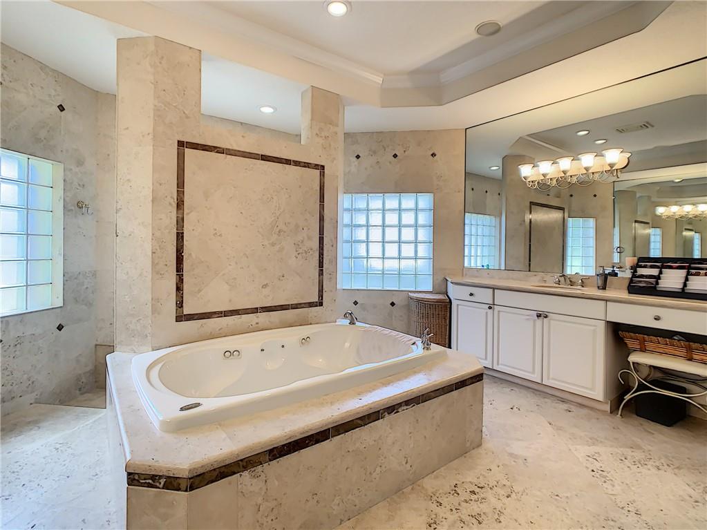 Beautiful 6 bed/5.5 bath estate home on 1+ acres corner lot located in prestigious Whispering Woods. Exterior Property features include: Salt water pool surrounded by travertine pavers, outdoor kitchen, built in generator, two separate driveways with room for up to 15 cars and extremely private backyard with manicured landscaping. Interior features Include: 18' vaulted & tray ceilings, saturnia marble throughout, walk in pantry, guest suite w/private entrance & 3 car garage w/custom epoxy garage.