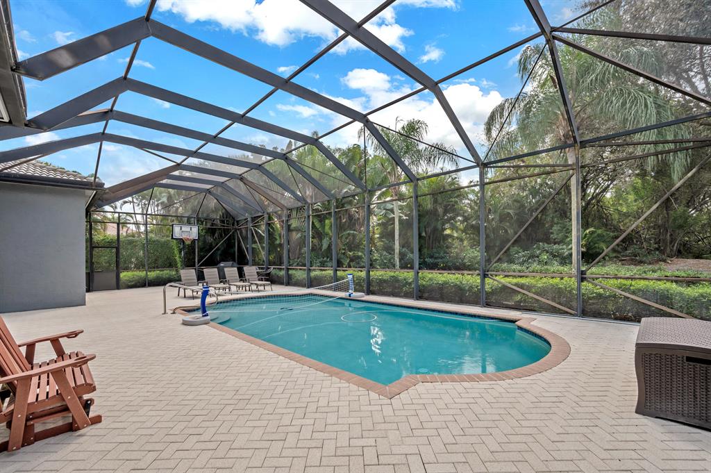WELCOME HOME TO THIS BEAUTIFUL ONE-STORY FAIRMONT MODEL(4/3.1)ON PRIVATE 1/3 ACRE CUL-DE-SAC LOT. THE HOME BACKS TO THE PRESERVE WHERE YOU CAN SEE THE NICEST SUNSETS AROUND. NEW LAMINATE INSTALLED IN ALL BEDROOMS, SCREENED POOL AND COVERED LANAI, ROOF REPLACED 2007, COMPLETE HURRICANE PROTECTION, WHOLE-HOME CONNECTION FOR GENERATOR/TRANSFER SWITCH. THE POOL IS SCREENED IN AND COMES WITH SALT GENERATOR AND BRAND NEW HEAT PUMP, THE YARD HAS ROOM FOR A SWINGSET OR SEPARATE PLAY AREA WITH PRIVACY HEDGES AROUND. KITCHEN HAS WHITE FOIL CABS, STAINLESS APPLIANCES, 2 BRAND NEW HI-END LENNOX ACs. WALK TO A-RATED SUNRISE PARK ELEM & EAGLES LANDING MIDDLE SCHOOLS & SOUTH COUNTY REGIONAL PARK RIGHT ACROSS THE STREET!