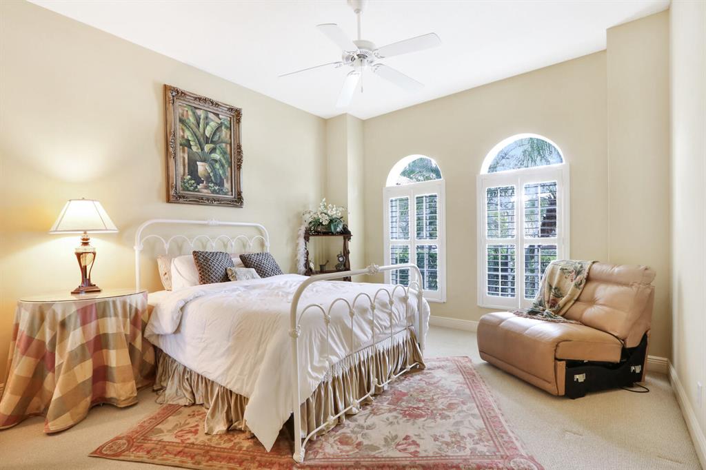 Lovely location in cul-de-sac with golf course view and privacy. This home has 2 bedroom/2 1/2 baths/den or convertible 3rd bedroom.Back patio is facing the pool and large private yard. Den with desk unit is included. Newer air-condition unit and hot water heater. Over $60,000 in builder upgrades.