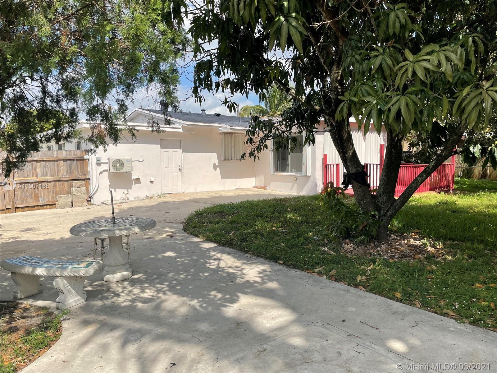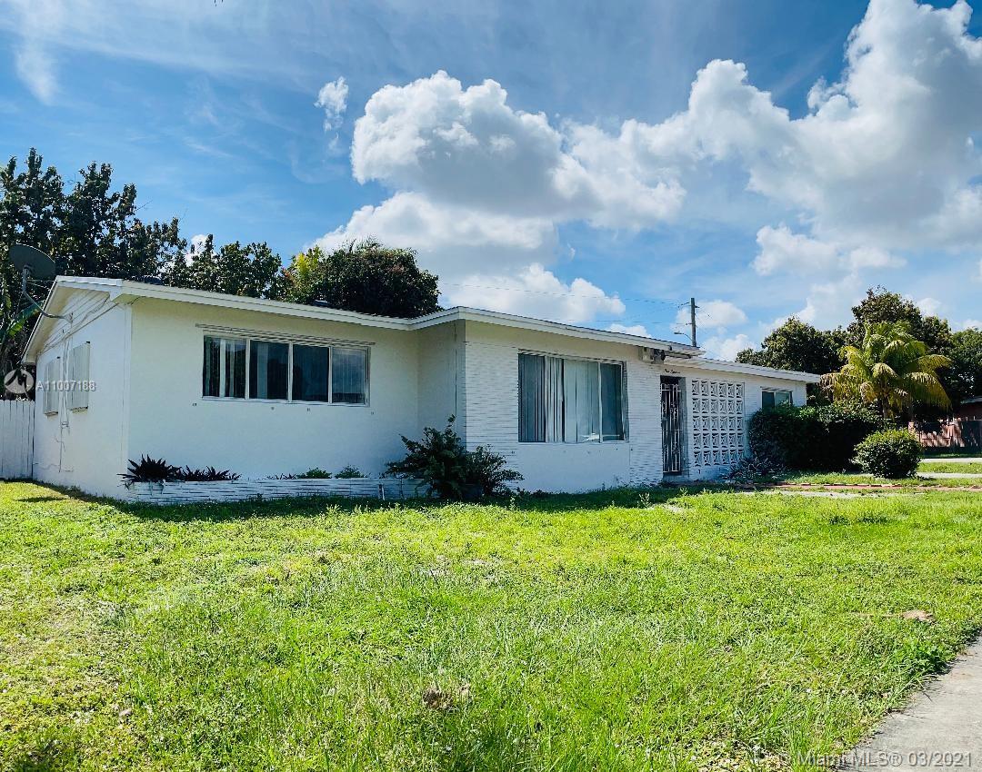 Charming spacious corner lot house with 5 bedrooms and 2 baths. Spacious living room, opened dining area, Florida room with wooden deck overlooking the oversized backyard. Huge kitchen with Granite counter tops, and plenty of cabinet space. House consists of a split floor plan, and spacious bedrooms. Tile and wooden flooring throughout the entire house. Oversized laundry room, which is perfect for additional storage. Extended driveway, with space to store boat and for added protection, hurricane shutters on most of the windows. No HOA. This is the ideal house for anyone looking to live on a quiet, peaceful street. Quick access to Jackson North Medical Center, I-95, Aventura, Greynold’s Park/Golf Course, Hard Rock Stadium. Charming house; and great neighborhood.
