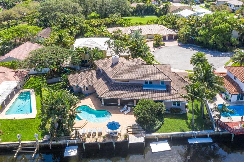Spectacular waterfront 6 bedroom, 4.5 bath, 3 car garage grand estate home situated at the end of a private cul de sac in the desirable east Boca Raton community of Spanish River Gardens/ Estoville. Relax at your heated saltwater pool and enjoy 100+ ft of waterfrontage off the tranquil El Rio canal. This home's interior was renovated in 2011. Designer features include marble flooring, double sided wood burning fireplace, crown molding throughout, plantation shutters and woven wood window treatments. The large open kitchen features wood cabinetry, granite counter tops, stainless steel appliances, LED over cabinet lighting, glass tile backsplash, pantry with pullouts and wet bar with wine refrigerator.