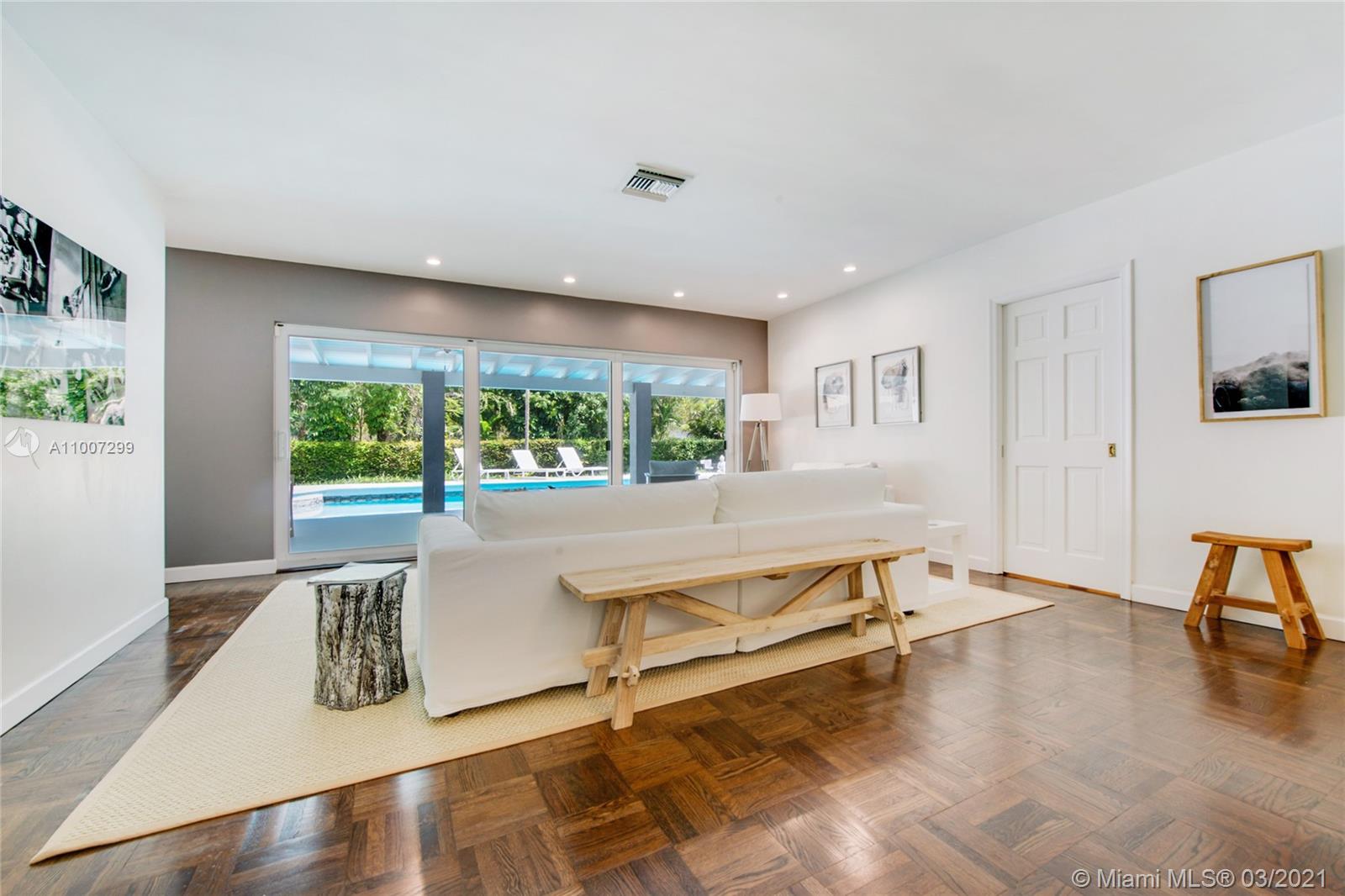Beautiful & bright North Pinecrest home . 4b/4b + family room, 3299 SQ FT Living area ,in more that one acre . Lush tropical garden with oversized pool and a large covered terrace, plus a spacious gourmet kitchen, makes it a PERFECT house for easy indoor/outdoor entertainment. Cozy master bedroom with spacious walk-in closet . Noble tile floors in the kitchen and woods flooring in the bdr and living areas. This is a fabulous family home just blocks away from Pinecrest Community Center with its art venue, park, public library, gym & the charming Pinecrest Farmers Market. Great private/public schools close by, Gulliver and Pinecrest Elementary School. Don’t miss this wonderful lifestyle !