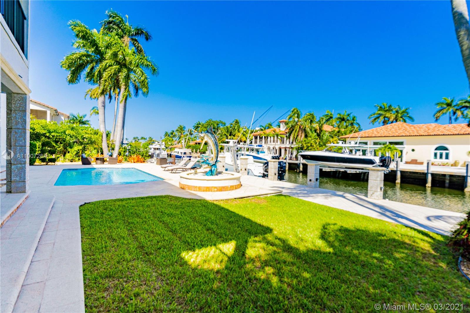 Gorgeous waterfront property with 100 ft private dock and boat lift. Close to intracoastal water, and ocean access. This 5-bedroom home has a full bathroom in every room, and 1 half bath downstairs. Master suite is upstairs with exquisite bathroom with large walk in shower and deep bathtub, both overlooks the water. Master suite also features private patio overlooking the water. Kitchen completely remodeled with new cabinets, deep sink, kitchen island, and quartz countertops. House also features impact windows throughout property. Backyard features a heated pool, covered patio with outdoor BBQ, and faces the east. 3 car garage with ample parking in front driveway. Private walkway to entrance to the front of the home.