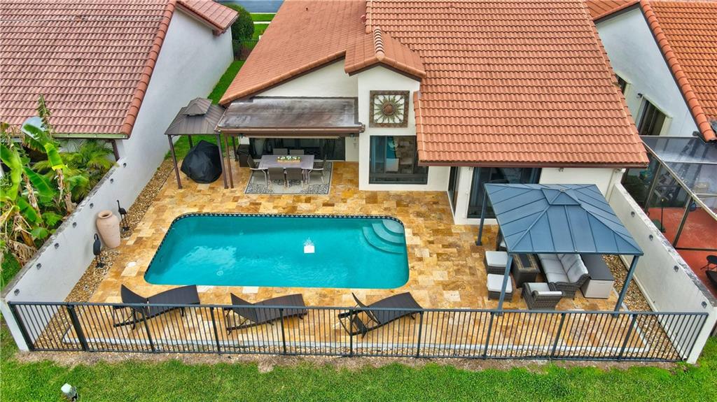 Famhouse Chic at it's finest! Upon entering you will be breath taken with the open modern concept and design. The kitchen features crisp white cabinetry, marble counters, center island. upgraded appliances and a sunny breakfast nook. The dining room boasts a swanky wet bar! Enjoy entertaining or family time in the spacious great room. Retire in the evenings to a luxurious master suite. Step into your master bath retreat with elegant features including a custom stainless soaking tub and vanity. Enjoy sunsets and summer days in your backyard oasis. The home boast newer AC, Hot water heater, pool equipment, roof, fence, pavers and Impact doors and windows throughout for protection. Located in the prestigious Del Prado school system and walking distance to places of worship.