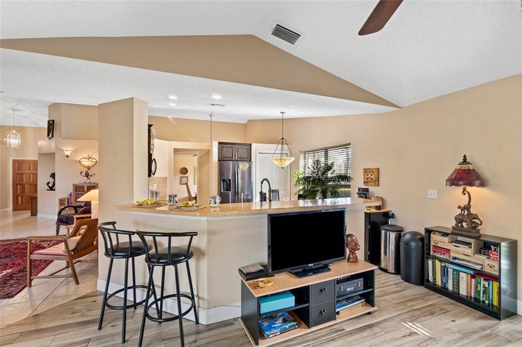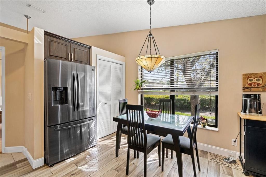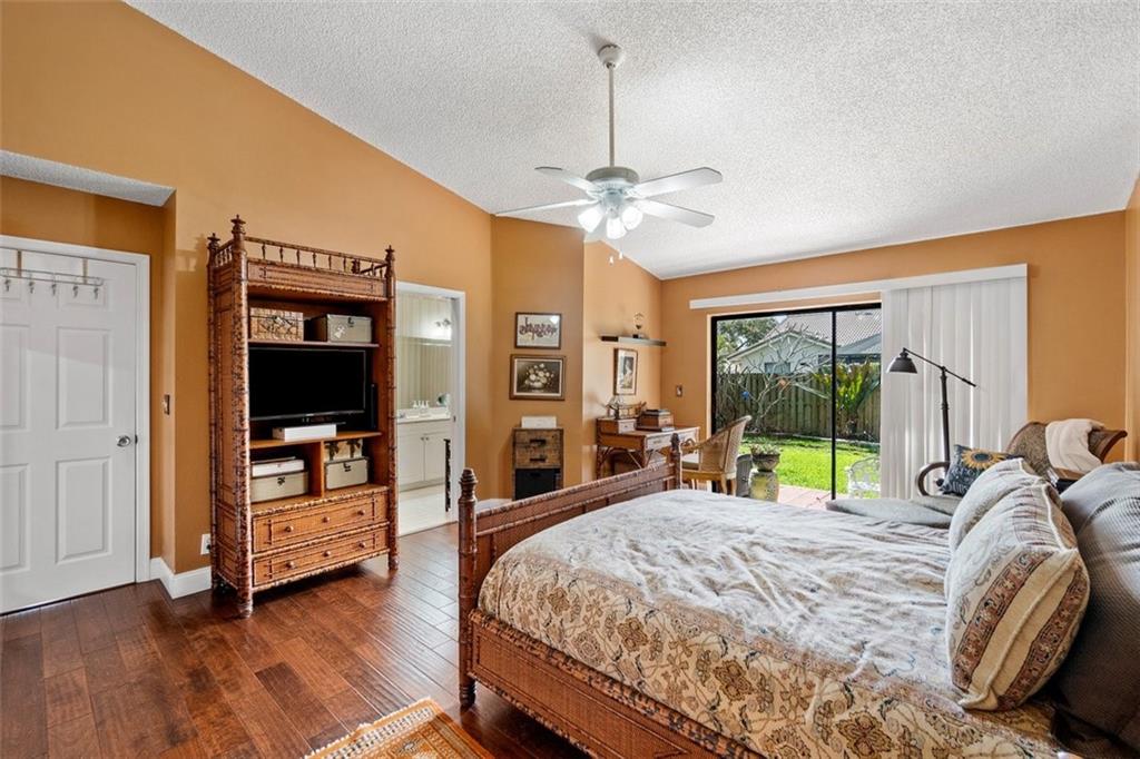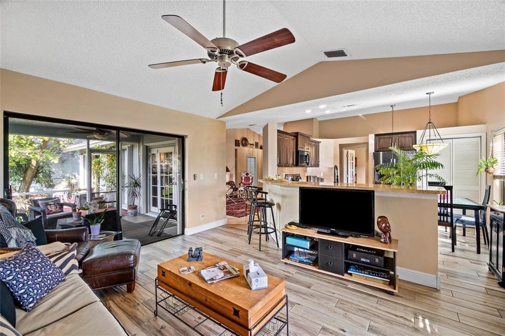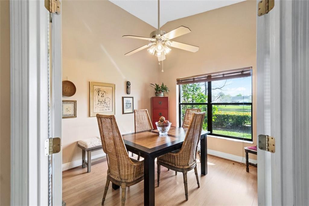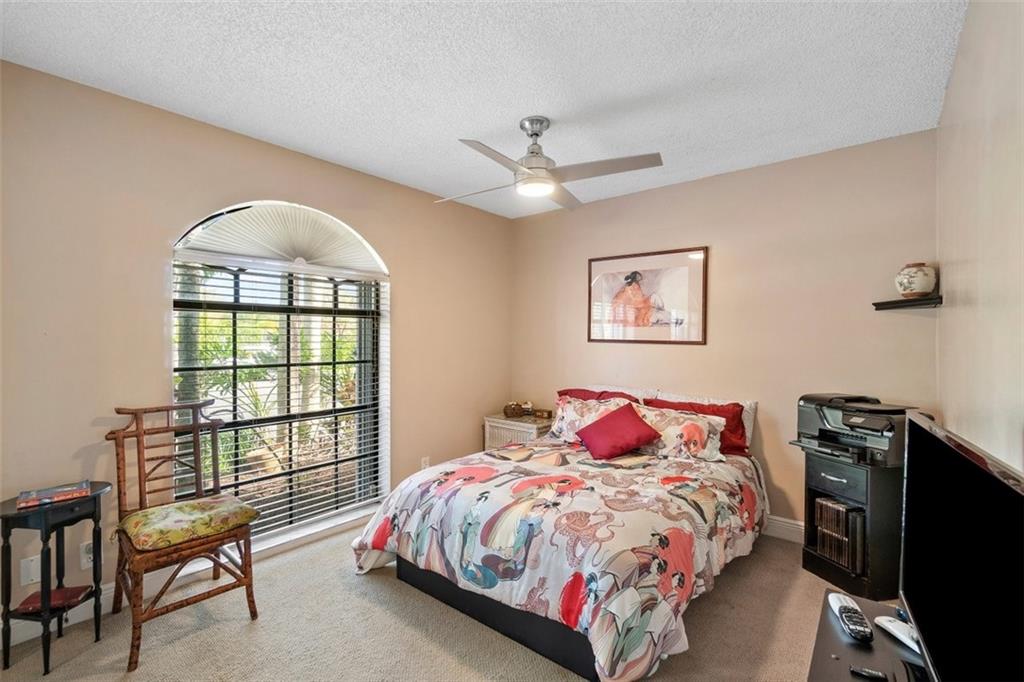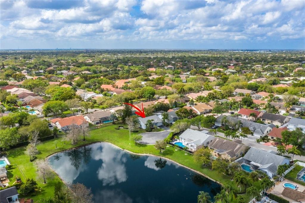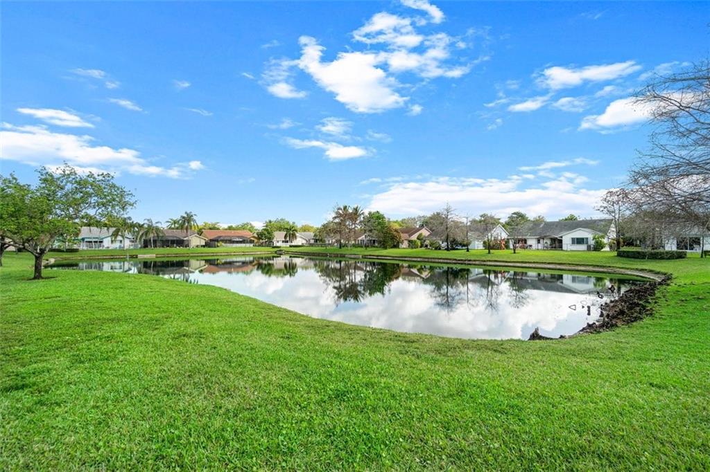 Fabulous & tastefully updated home situated at the end of a quiet cul-de-sac with a 2019 ROOF. It borders a passive green space with a beautiful lake allowing for breathtaking water views from within the home. It is light & airy with a split floorplan, 4 bedrooms, plus a den/office (could be a 5th bedroom). Open & spacious kitchen/family room area, with newer black stainless steel appliances, fine wood cabinetry & wood-like tile floors. The master suite is a private retreat with wood floors, glass doors leading to the deck & backyard, large closets & a spa-like bathroom with a separate shower & garden tub. Other offerings: Volume ceilings, french doors, accordion shutters, screened porch, updated bathrooms. Walk to shopping, dining, parks & A-rated schools. Beautifully maintained.