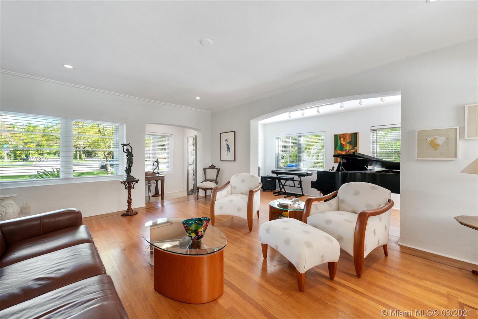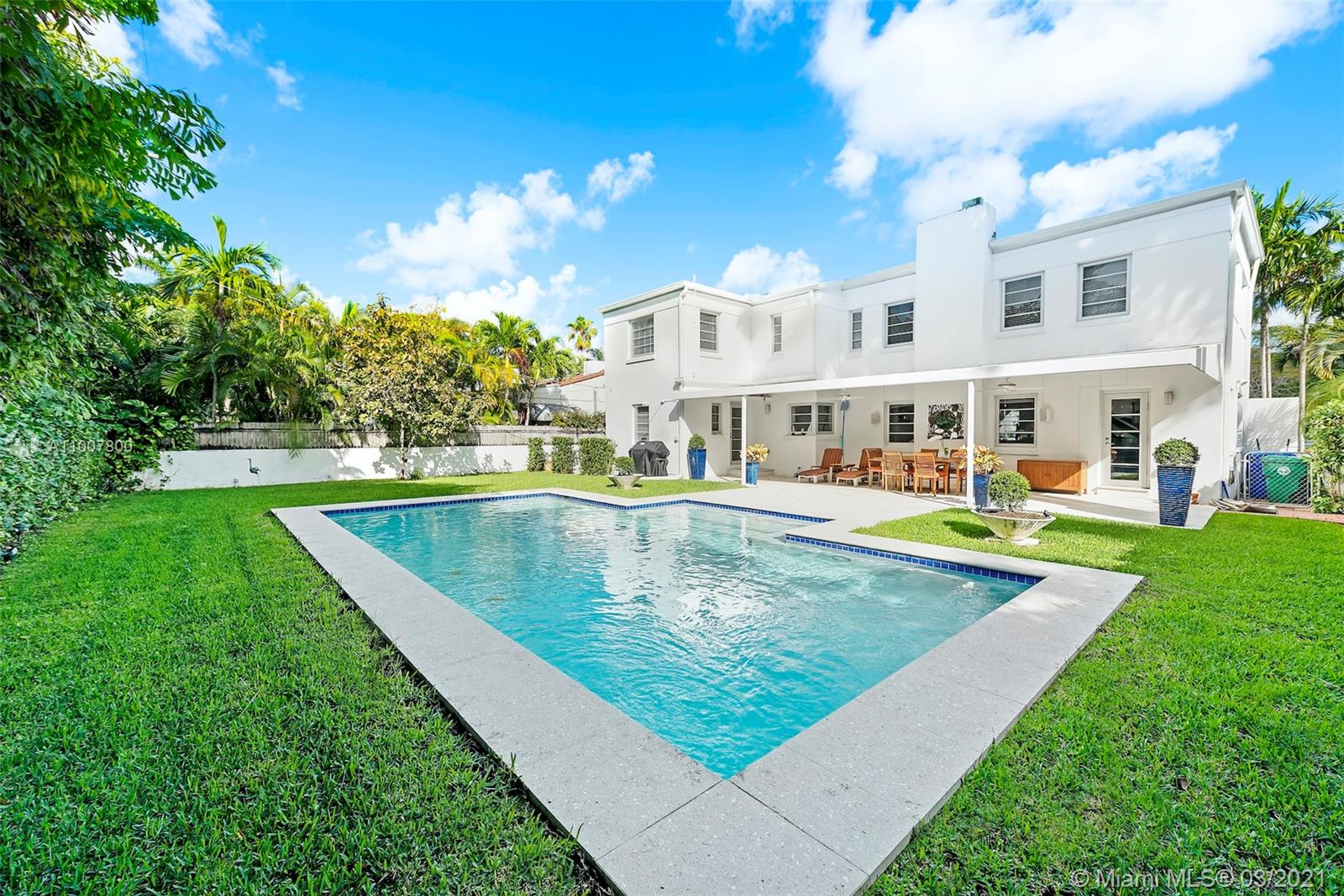 Remarkably restored immaculate Art Deco home in the heart of one of Miami’s best neighborhoods... gated Morningside. Original character meets contemporary living w/ family friendly flow-through floor plan featuring renovated eat-in kitchen, separate laundry & 3 bedrooms all on second floor. Spacious & bright master suite offers convertible office space / den / nursery & access to oversized terrace. Enjoy marvelously kept hardwood floors & all impact glass throughout w/ gorgeous fireplace adorning the living room, hedge-lined backyard, oversized heated pool, covered patio & 2 car garage. Just a block away from Biscayne Bay & Morningside Park (largest park in all of Miami!) - 60 acres of green space includes boat ramp, tennis & basketball courts, playground & stunning bay views.