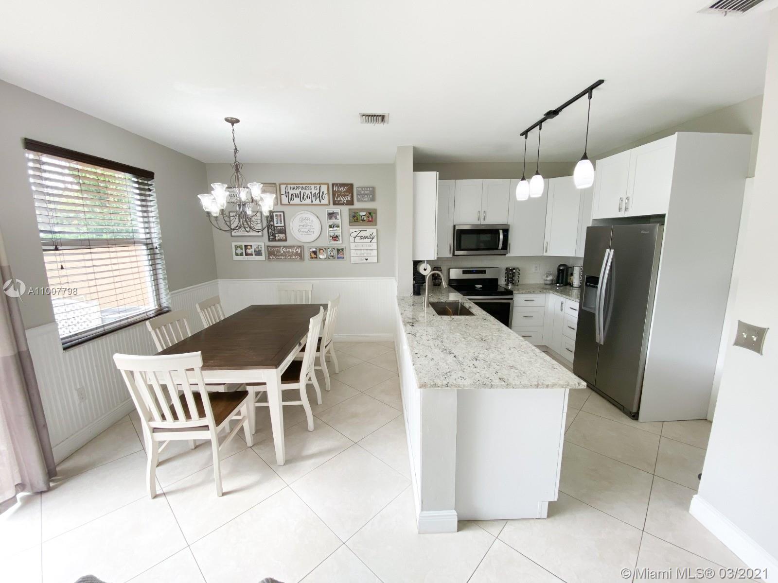 Beautiful townhome in the West Pembroke Pines neighborhood of Park Crossing inside Towngate. This corner lot unit features lots of windows with all the natural light you could want. 24x24 porcelain tile on 1st floor & laminate is on stairs and 2nd level. The kitchen has been upgraded to all white shaker cabinets with granite countertops. All stainless steel appliances. The backyard has all artificial grass meaning no maintenance and no muddy footprints in and out of the house. You also have access to the private, gated common area as you walk out of your back gate. Home comes with a one car garage and a driveway that safely fits 5-6 cars. HOA covers all roof maintenance and repair as well as yearly pressure cleaning. Fantastic neighborhood, filled with kids and a great place to call home!