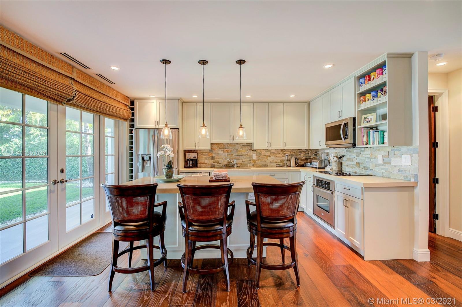 Completely remodeled in 2015 this Sans Souci gated Key West inspired home encompasses the perfect balance of sophistication, attention to details, and top-of-the-line construction. Situated two lots from the bay, this home comes with an incredible angle bay view and provides any boat enthusiast with direct access to the open waters. Wide-open floor plan, custom-built kitchen, and high-quality red oak boards flooring, redone spacious bathrooms with natural stone. From the roof to the windows and doors that meet the highest quality standard. 3 zones A/C, Camera system, Alarm, Automatic driveway fence. THIS HOME IS A MUST SEE!