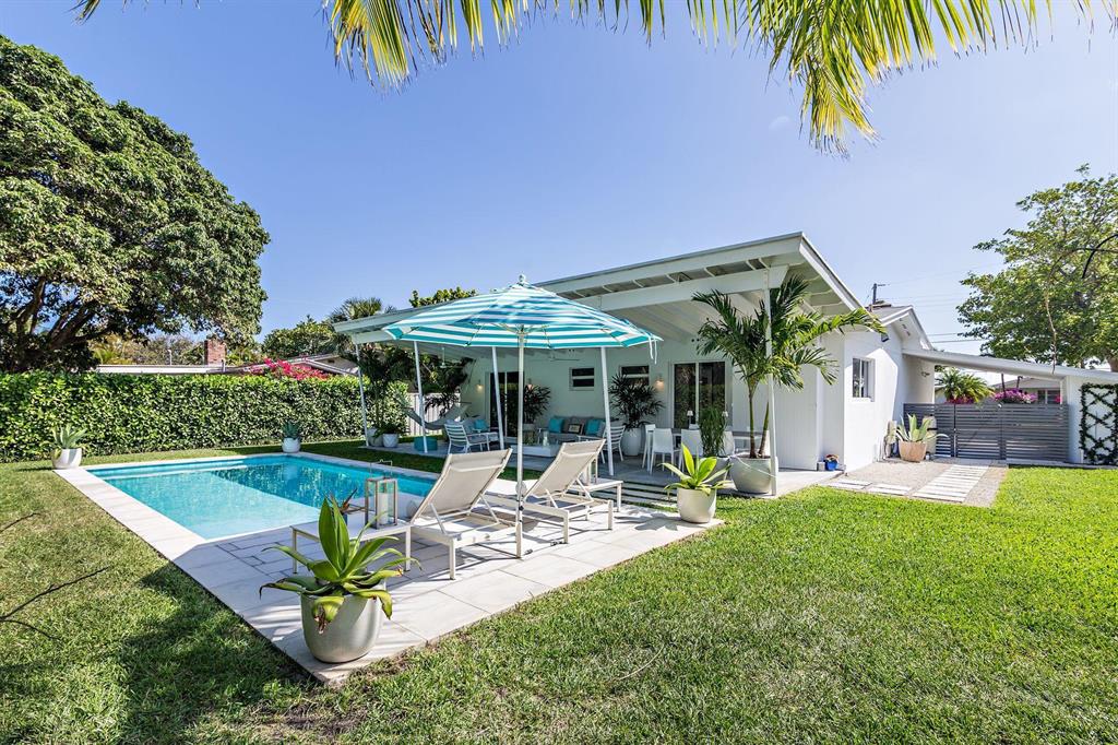 Classic 1950's Mid-Century Modern renovated 3-bedroom, 2 bath South of Southern house offers an updated kitchen and bathrooms, a newer roof and terrazzo floors, impact windows and doors. Exterior features include a circular driveway, carport, a large fenced backyard, covered porch, lush landscaping and pool. Convenient to Palm Beach, downtown attractions and minutes to great local restaurants, the airport, museums and the beach.