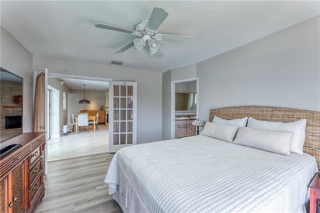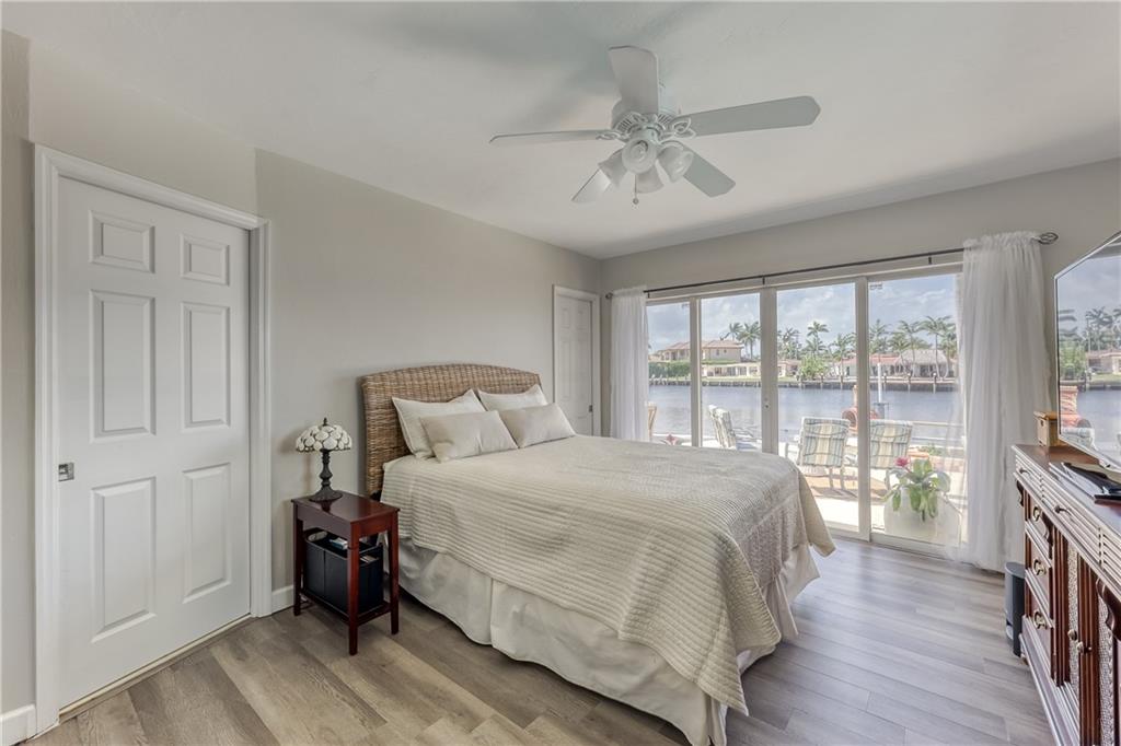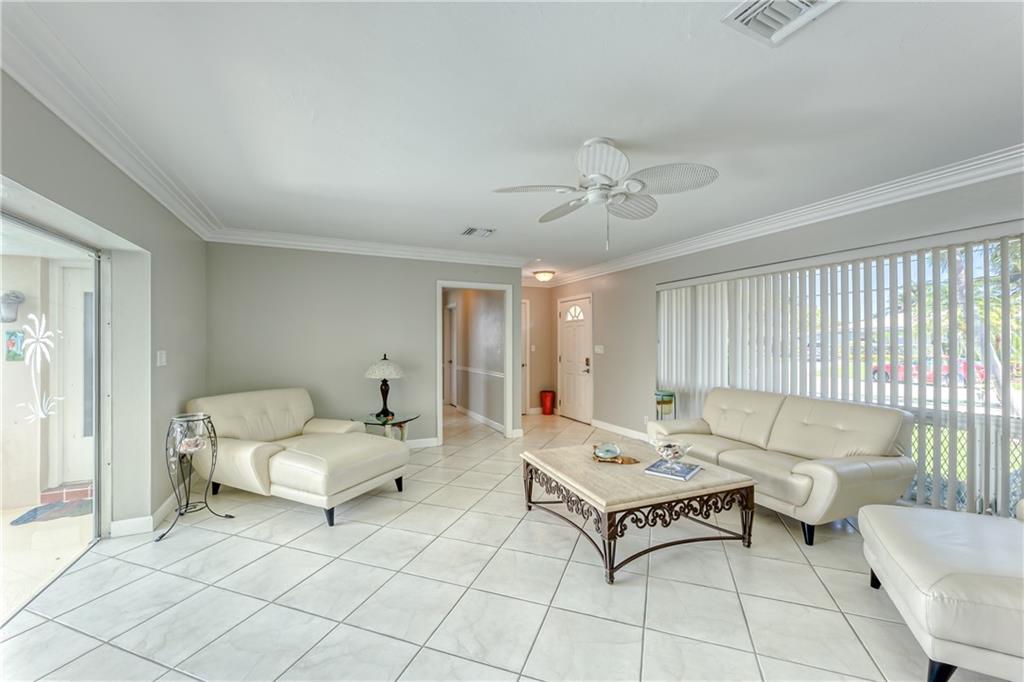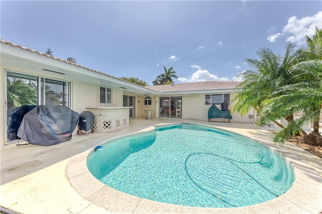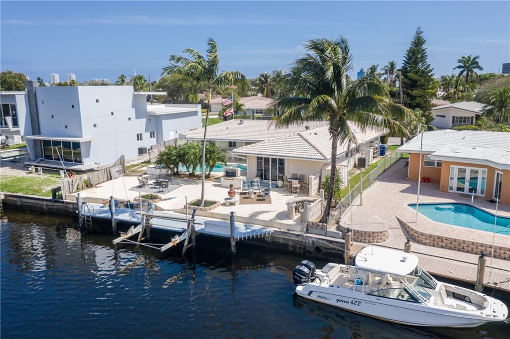 Located on a beautiful street & featuring 3 beds, 2 baths, a 2 car garage, indoor laundry room & a split floor plan. Incredible waterfront view on a wide canal & wide turning basin. A true boaters paradise. Primary bedroom, guest bedroom & both living areas look out to the open water. Kitchen is open with a butcherblock island, great counter space & lots of storage. Walk right out to the backyard to BBQ & enjoy time with family & friends. The bedrooms are bright & cheerful & offer great closet space. The primary bedroom has a large walk in closet, bathroom w/ double vanity, linen closet & sliding doors to the patio. Relax on the back patio & watch the boats pass by, or lounge all day by the pool. Come enjoy the most incredible sunsets in Pompano! South Florida living!