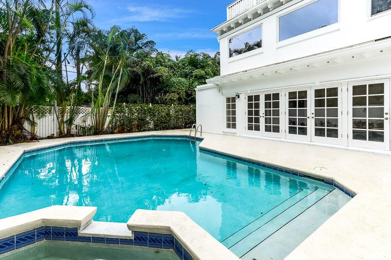 Belford Shoumate-designed 2-story Bermuda located on the Intracoastal block, in the desirable El Cid neighborhood. The residence features four (4) bedrooms with four (4) baths, living room with peck cypress ceiling, dining room, bright sunny rooms, pool and patio area, a 2-car garage and more