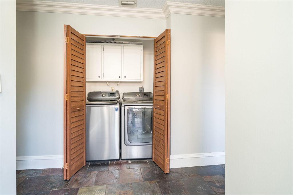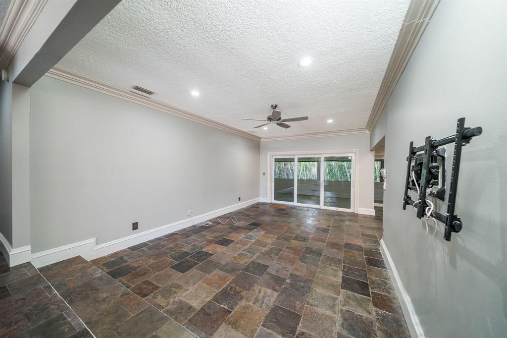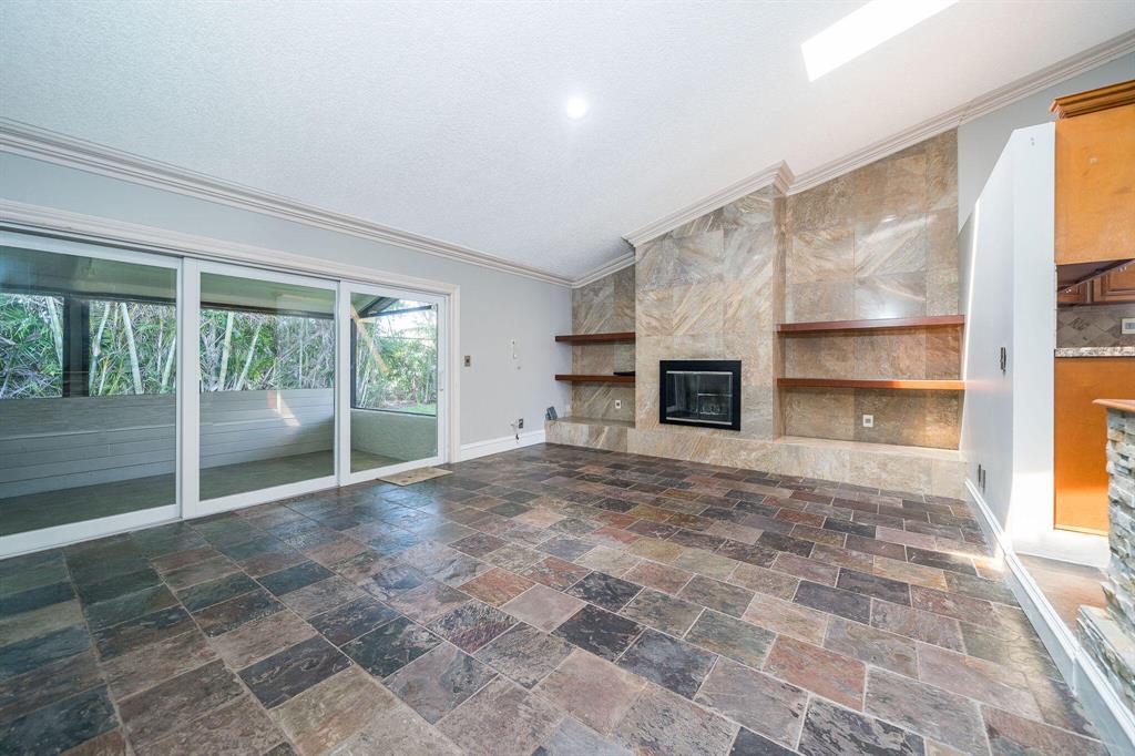 Immaculate upgraded home with an open floor plan! 4 Bedroom / 2.5 Bath. Beautiful Slate Floors and newly installed Estate Crown Moldings & Base Boards. Top of the line Modern Legrand Outlets, LED Lighting & Fans. Updated Kitchen, Granite Countertops, Wood Cabinets, S/S Appliances. Dining Room & Family room with cozy Marble Fireplace & Quartz ledge-stone Wall & Large Sliding Glass Impact Doors. Spacious Master bedroom