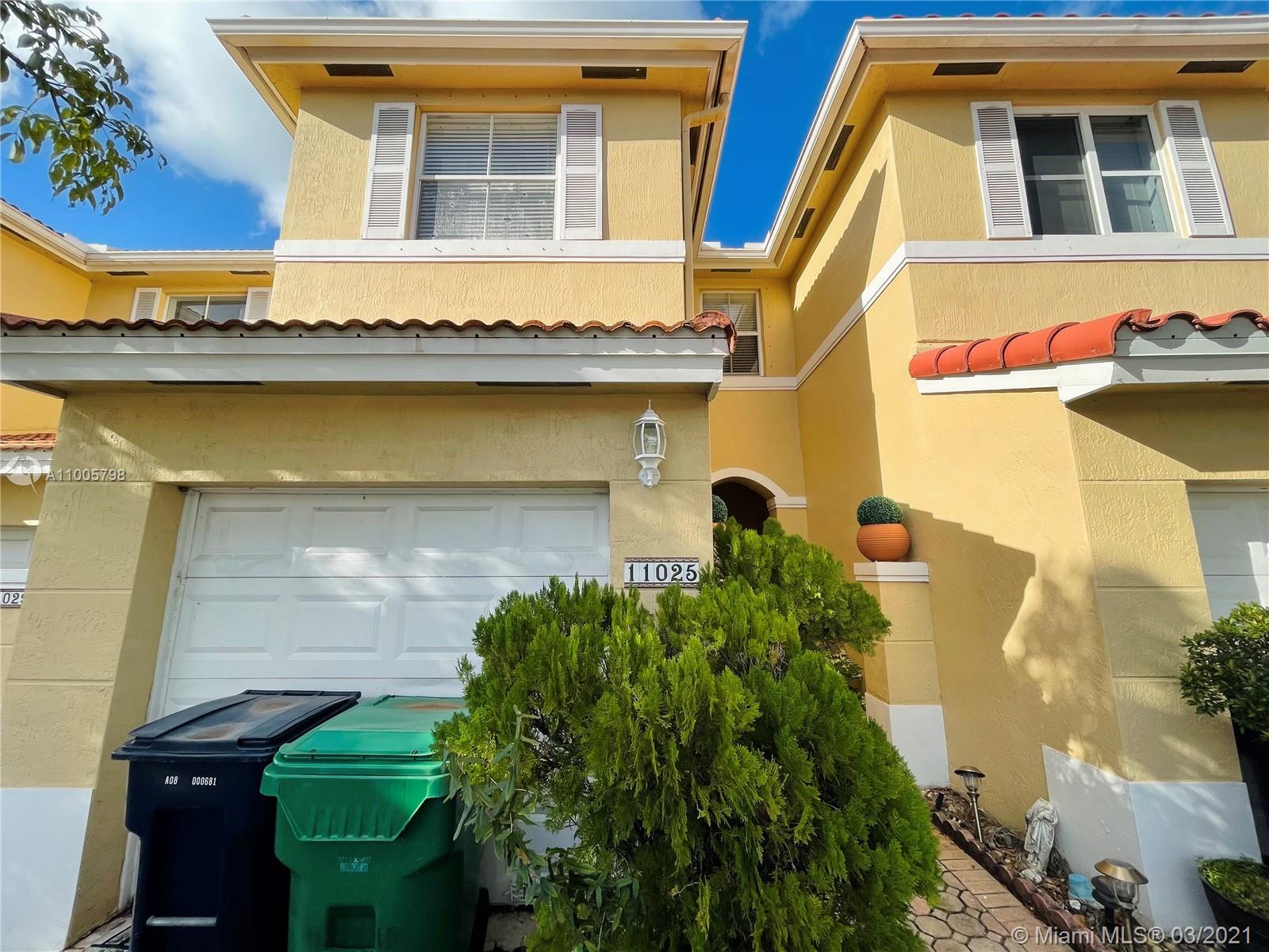 Location, location, location!! Two story townhouse in the very desirable community of Eagle Cove at Doral. Nice layout, spacious and bright. This quiet and peaceful gated community is close to major highways, restaurants and shops. The townhouse features 3 bedrooms, 2 1/2 bathrooms, 1 car garage, two parking spaces and small backyard for barbecuing and entertaining. Amenities include community pool and green common area with one of the most affordable association fees in Doral. Make this your new home!!