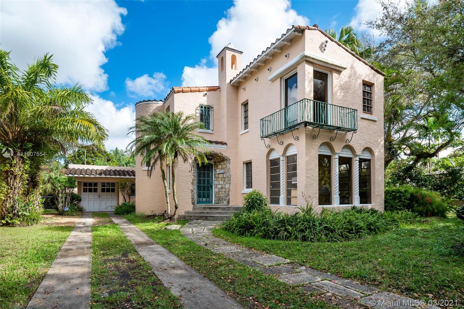 PROPERTY ONLY TO BE SHOWN TUESDAY 3/16 3pm-6pm & WEDNESDAY 3/17 10am-1pm. ALL BEST AND FINAL OFFERS DUE BY 5 PM THURSDAY 3/18. Old Spanish gem awaits your touches to bring it back to glory! Situated on closed street, so there is no cut-through traffic on this peaceful street in a beautiful section of Coral Gables. Room to expand east side of the property. No historic designation. This double lot features plenty of space to expand the structure on east side of the property or enjoy the ample yard space. Walking distance to restaurants, grocery store and other retail amenities as well as Coral Gables Wayside Park. In-law quarters has been rented in the past with separate entrance. Close proximity to Coral Gables Country Club, Venetian Pool, Biltmore Hotel pool/golf/gym/tennis & more!