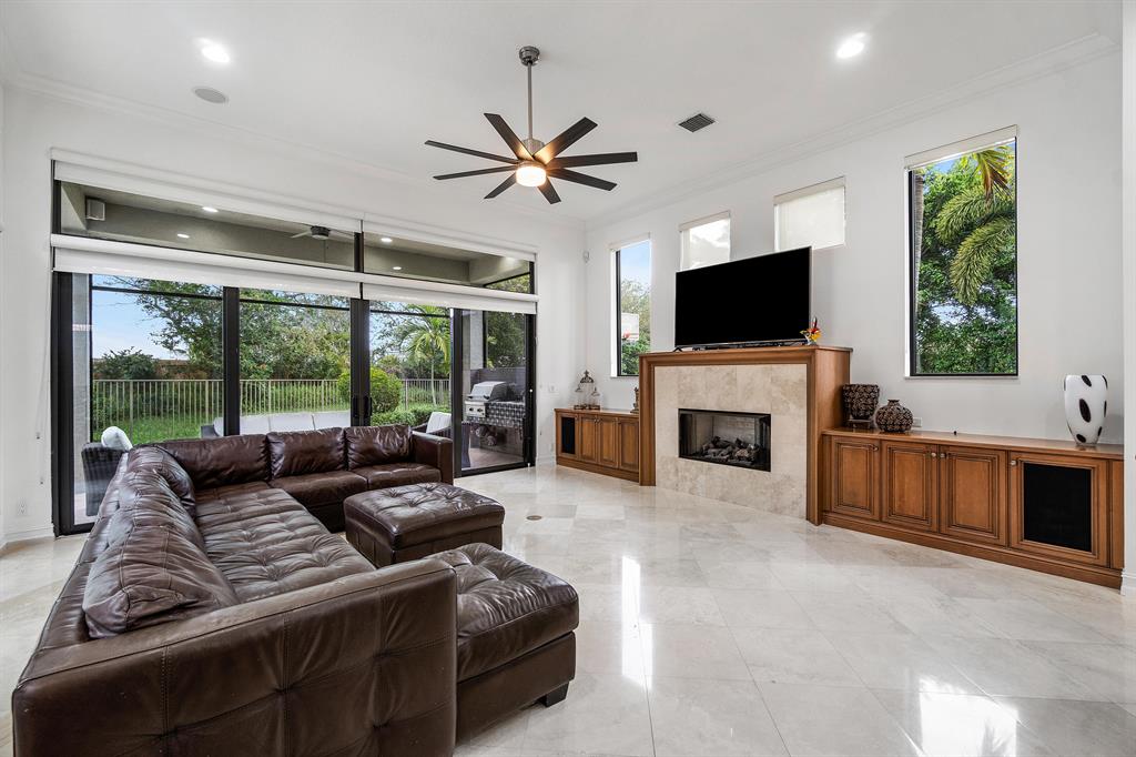 Introducing this one-of-a-kind custom estate located on one of the largest lots in the Oaks with room to expand! W/ magnificent finishes & appointments thru-out this home includes 3 bedrooms + library/ bonus room/4th bedroom; 3-way split with a luxurious grand master suite, featuring marble floors, his & her baths & his & hers fully outfitted closets. Absolutely phenomenal living space w/ a fabulous gourmet kitchen w/ stainless steel appliances and granite countertops. The main living areas feature marble floors thru-out, high ceilings, and an open floor plan. All bedrooms are en-suite with new designer faux wood flooring. Full impact glass. Set on an unbelievable 1/3 acre cul de sac lot w/ huge grassed yard, built-in grill, screened dining area, resort style pool/spa & sports court.