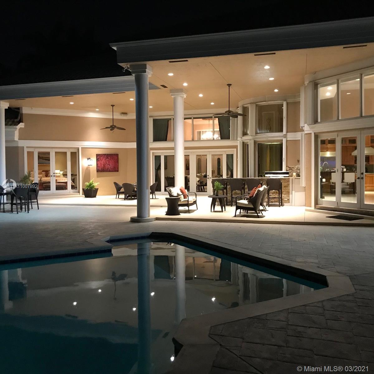 Gorgeous One Story Home at The Exclusive Gated Community Windmill Ranch Estates. One of the Best Waterfront Properties. Spectaculars Sunsets. Great Layout, Tall Ceilings w Glass Doors and Windows overlooking the Pool and Lake. 6BED/6BATH, Office, Laundry Room, Wet Bar, Marble and Hard Wood Floors, Gourmet kitchen, Stainless Steel Appliances, Viking Gas Range, Two Electric Ovens, Food Warmer Drawer, Sub Zero Refrigerator, Ice maker, Storm Impact French Doors, Accordion Shutters, 3 Car Garage, 4 A/C, Spacious Master Bedroom with two walking closets, Electric Shades . Fully fenced Lot. Covered patio excellent for entertainment. Municipal Sewer.
