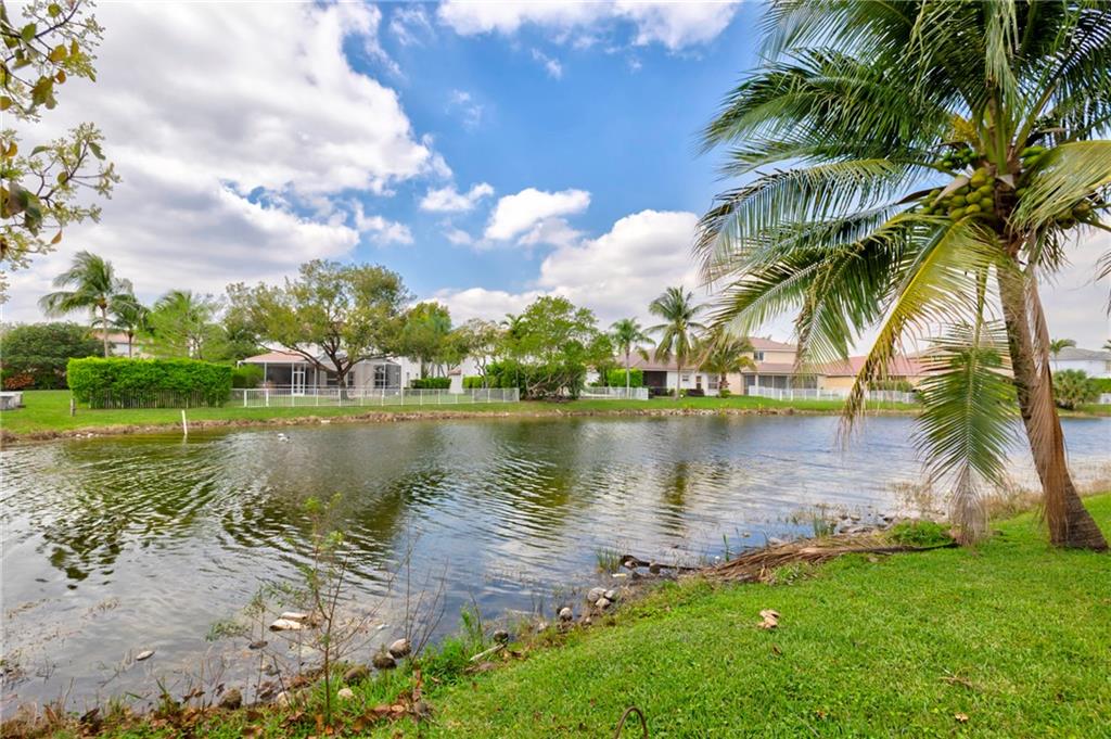 Relax in your own private backyard w/ a pool & spa overlooking the lake. This Tropical Paradise also includes Tiki Hut w/electric/plumbing, pool side shower & sink for your convenience when entertaining. Fully fenced yard. Lots of living space inside w/ formal dining & living area plus family rm, open floor plan kitchen w/ granite & lots of cabinets w/counter top eating area & room for table, split bedroom plan, separate laundry room. Tile thru out living areas & 1 bedroom. Owners suite, his & hers closets & sinks w/ roman tub. Recessed lighting thru out. Garage has AC use as additional space, xtra wide driveway. Culdesac and corner location! Roof being replaced. Newer Ac & H20 heater. Hurricane Shutters. Come make this property your own. Bring your offers! Hurry, before its gone!!