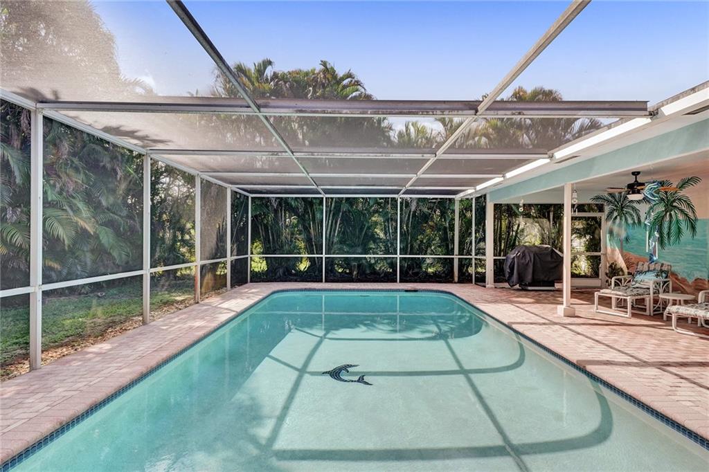 WHEN 'SPECIAL' IS A HOME REQUIREMENT, SEE THIS HOME! THE APPEAL IS REAL! Pristine condition with everything maintained to the highest standards. NEW S-Tile roof March 2020. New garage door March 2020. New Central A/C system August 2020. Split bedroom plan, large living and dining areas. Remodeled kitchen featuring wood cabinets, stone countertops with matching table! All upgraded appliances 2015. The pool resurfaced with adorable tile dolphins. Lovely patio with new flat roof (2016) for real Florida living. Backyard is private and tranquil.All Impact Glass, except for North side bedrooms which have panels. Exterior electrical box was changed in 2018. Only a block walk to Liberty Tree Park! Professionally painted exterior in 2020. This magical home will not last, Don't miss it!!