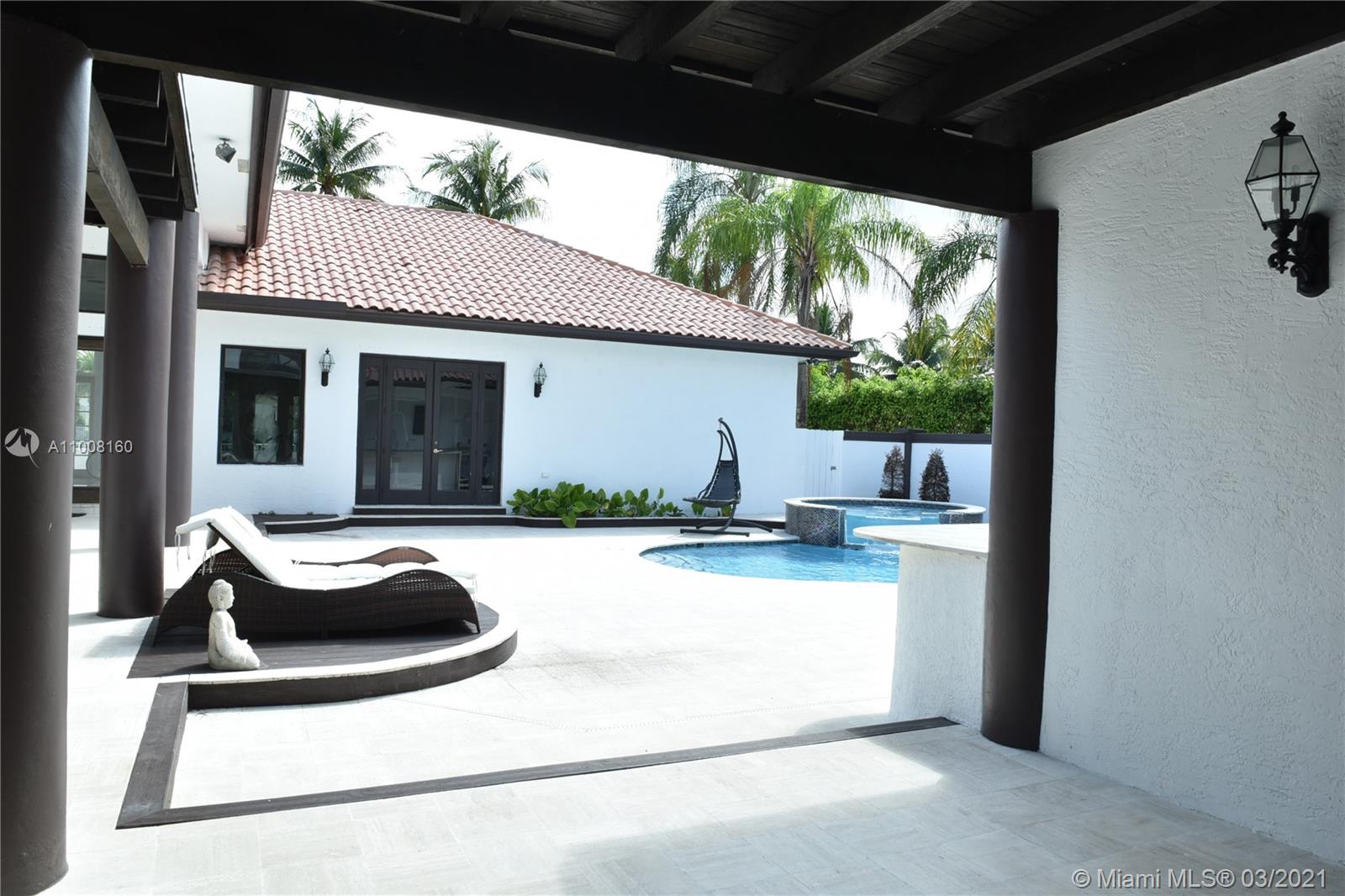 Gorgeous Estate Home in the Enclave Circle, the most prestigious section of Grand Palms Gulf & Country Club. This home sits on a water front lot. Indoor patio with pool, bar and covered area for outdoor enjoyment. The split floor plan offers 5 bed, 4 & 1/2 bath. Master suite with vaulted ceiling, open view to the lake, his her w/in closet, master bath with separate tub-shower & his-her vanity. Formal dinning, wine cellar, very spacious kitchen, cook island & separate breakfast sitting area open to large family room with pool views, covered sitting @ outdoor patio area. Great location close to A+ schools, shopping, dining, highway & transportation. HOA includes: basic cable, ADT alarm, man guard main gate & second gate into the Enclave community.