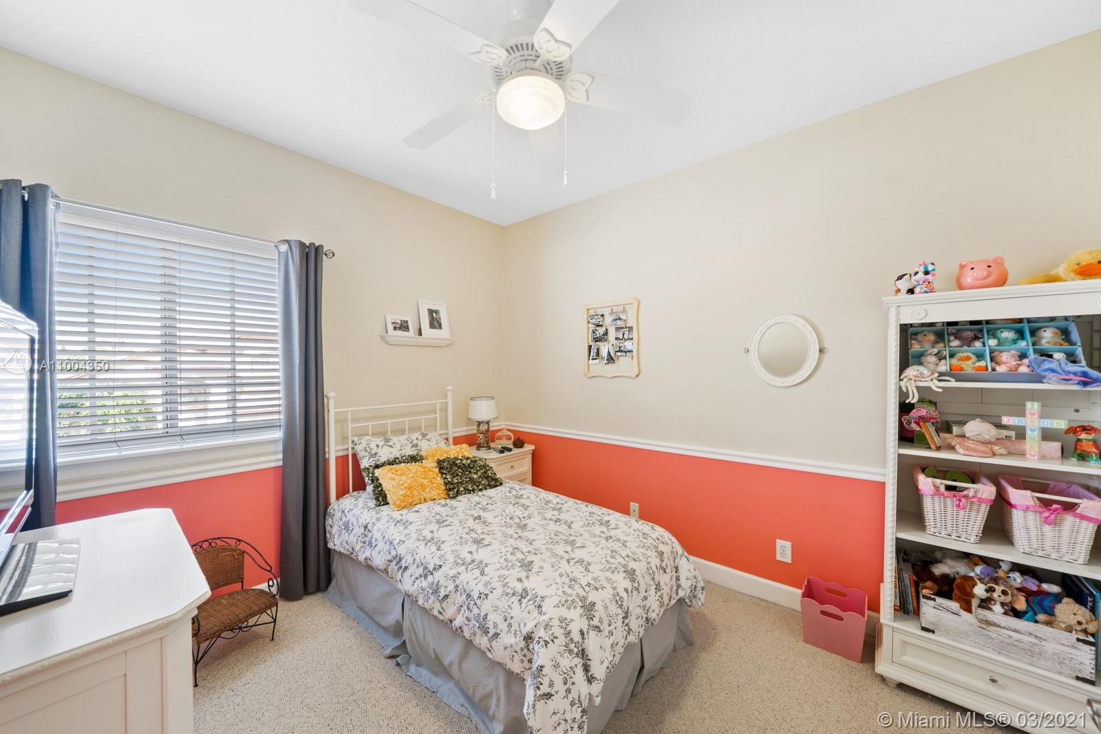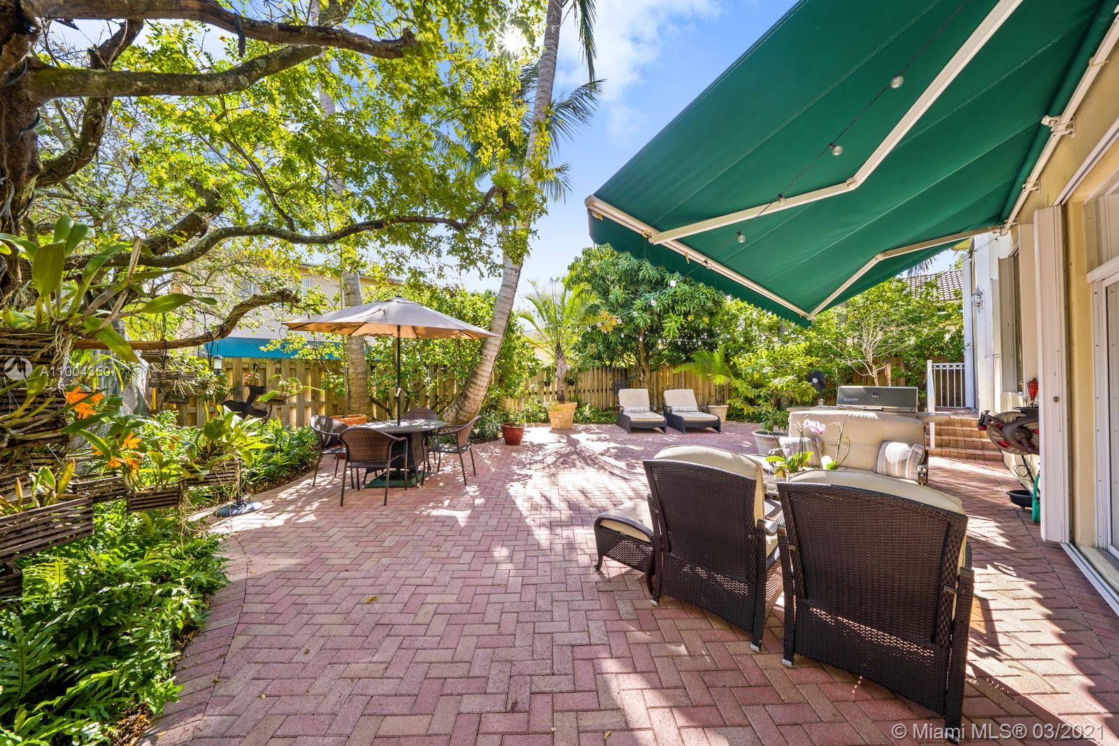 Elegant home featuring vaulted ceilings lots of natural light from the arched windows, spacious living area. Remodel kitchen with stainless steel appliances all the comforts of a luxury home, including a wine cooler, all wood cabinets with under light, spacious pantry area and room for a breakfast table. Florida room opens access to the patio 1 full bath and laundry room on 1st floor Beautiful wooden stairway takes you to 2nd floor 1 Master and 3 more comfortable bedrs. The back yard is paved ,electrical awning including cozy landscaping with fruit trees and exotic plants, custom made aviary to enjoy nature and relax with the family. Impact windows & accordion shutters, 2 car garage with an extra refrigerator, 2 new AC units. Low HOA $219 Gated