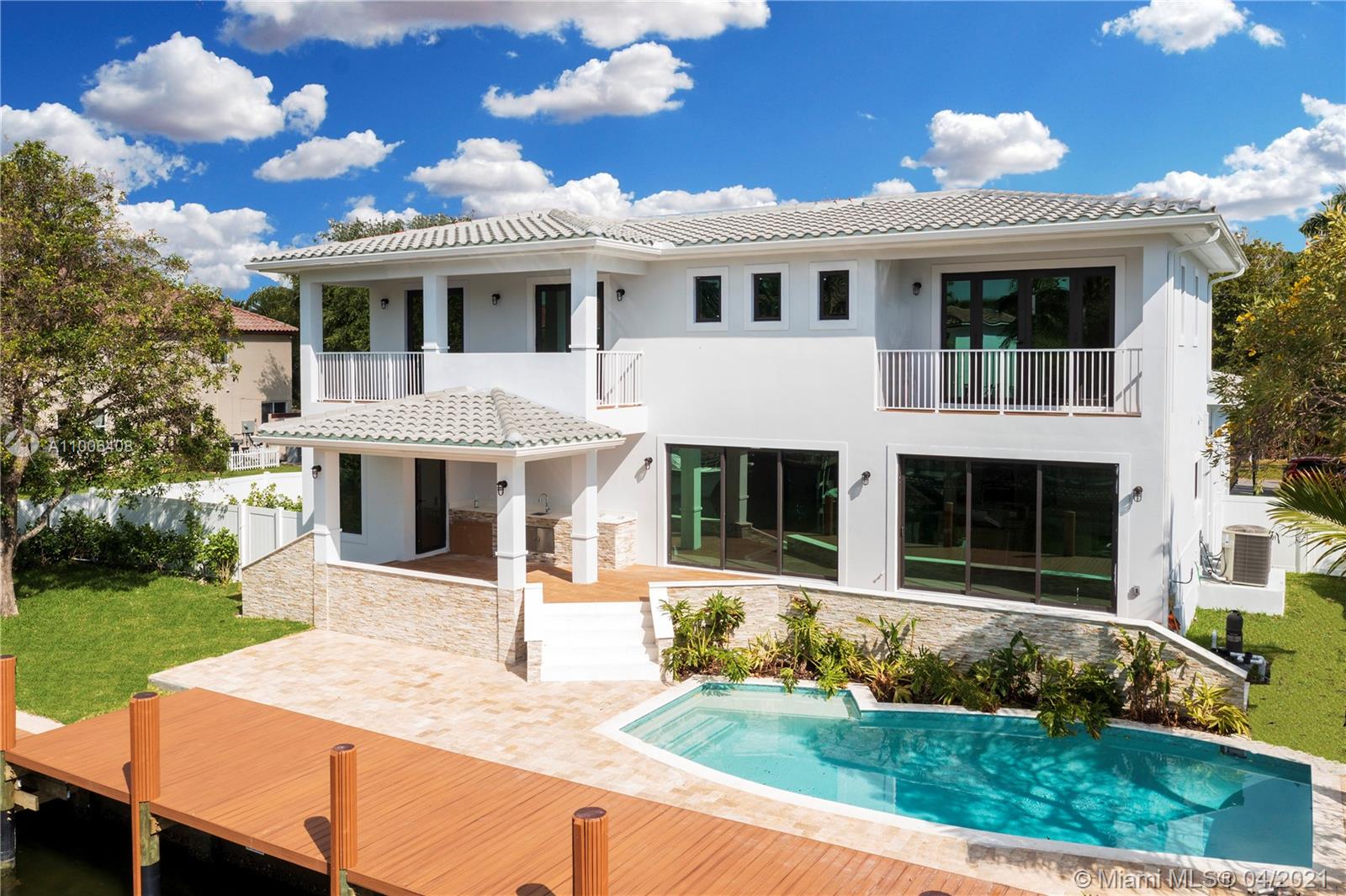 Brand new construction, a beautifully designed home located in an exclusive area of South Lake in Hollywood Beach on a 100’ waterfront lot with direct ocean access seconds away from the Intracoastal. The house spans a total of 5,000 Sq Ft, with 3,660 Sq Ft of living area, 5 bedrooms, 5 full and 2 half bathrooms, 2 balconies. The property sits on a 12,000 Sq Ft lot with a sparkling pool and a new boat dock. Top-quality build by Sagewood Construction, exquisite designer finishes, Florense kitchen and baths, Miele appliances add to an appeal that makes this magnificent property stand out from the rest. The 2-car garage is complemented by a carport and a large driveway that can fit multiple cars. Waterfront new construction priced within the range of $800’s per Sq Ft is a rare find.