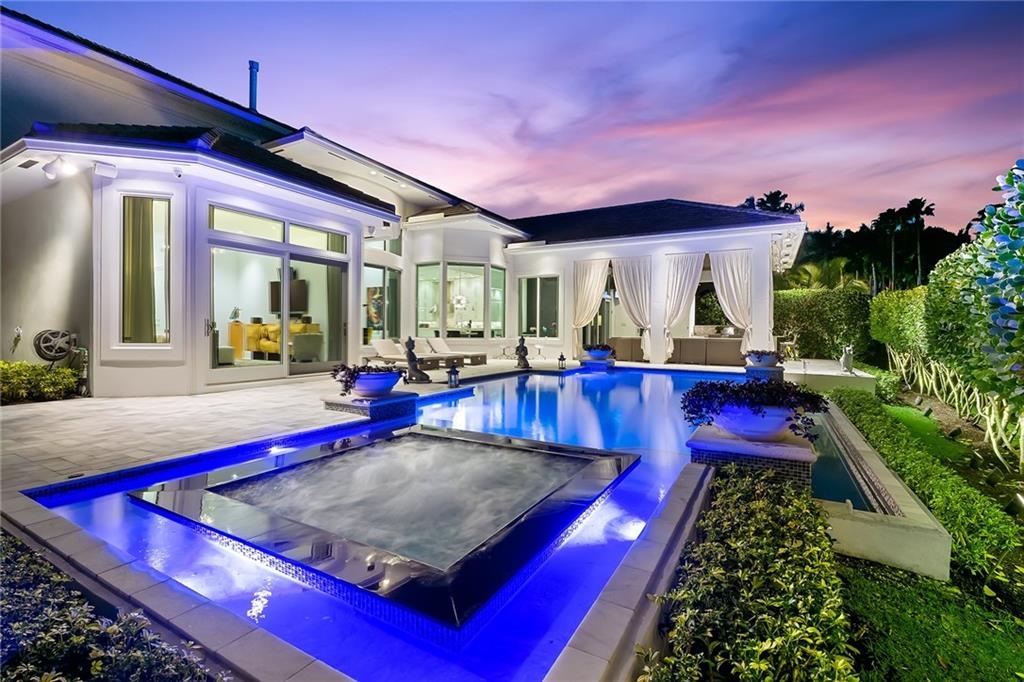 Architecturally designed and set in the sought-after guard-gated Hawks Landing is this stunning estate. An expansive layout awaits with 6 bedrooms and 7.5 baths en suite. High ceilings and oversized porcelain tiles exude luxury, while the list of features includes LED lighting, hurricane impact windows and doors, and crown molding. The kitchen has stainless steel Thermador appliances, marble counters, and custom cabinets. The master suite overlooks the pool with three large walk-in closets, a master bath with double vanity, a freestanding tub and shower. Indoor-outdoor living with a high-end summer kitchen, retractable awning drapes, luxurious infinity-edge pool, spa featuring fiberoptic lighting, surrounded by lush landscaping for privacy. Full feature list available upon request.