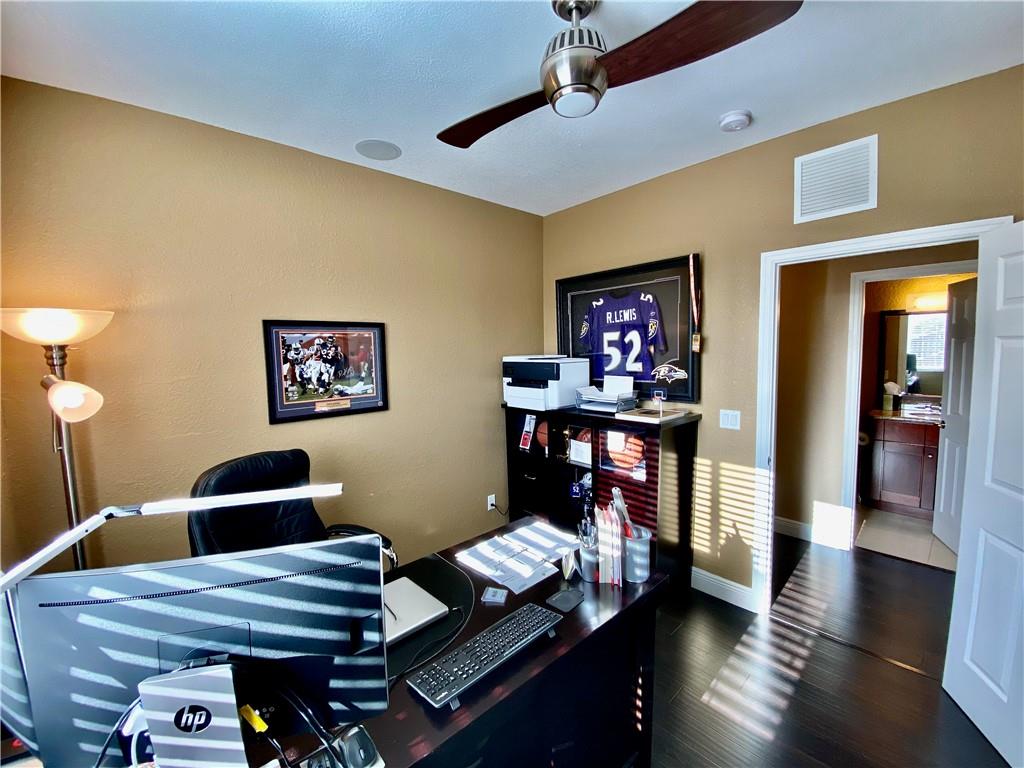 Beautifully upgraded well maintained two story home in Oakbrook in Weston Hills. New Roof 2020. Upgraded kitchen with quartz countertops and stainless steel appliances. Fenced back yard around pristine pool. Custom floor plan with second story addition. Three bedrooms downstairs and two bedrooms upstairs. Upstairs could be used as a media room and office or in-law suite with huge room and office with a storage room. Impact glass on second level. Expansive laundry room with tons of storage.