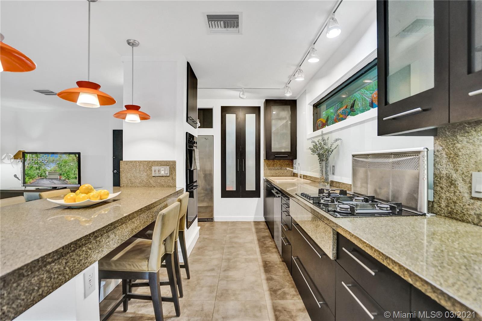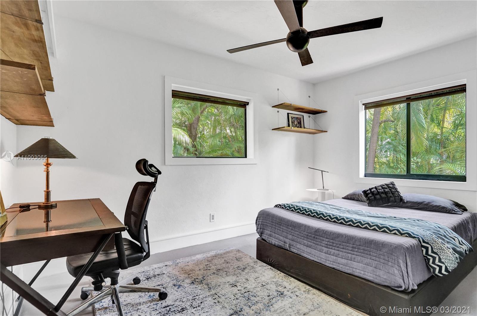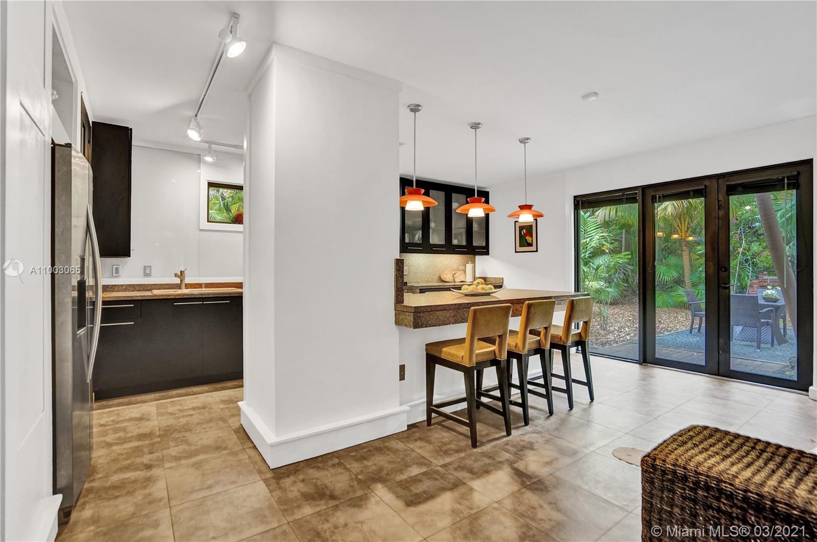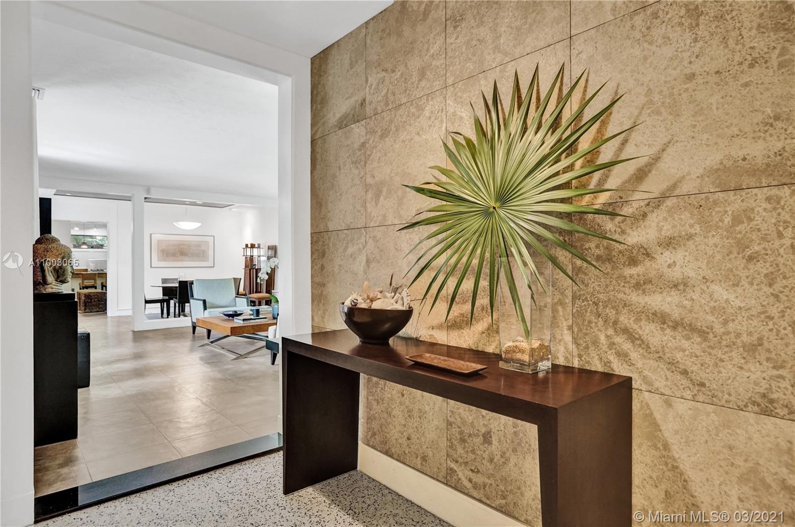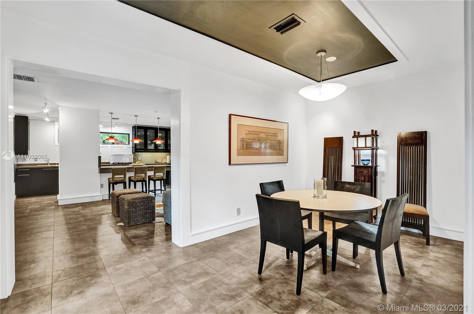 Coral Gables spectacular! 4/3 bed+office/2 baths renovated and expanded with style by architect owner. Entrance courtyard with koi pond, perfect for outdoor dining or yoga under a canopy of mature oak trees and palms. Formal living/dining rooms, equipped kitchen with s/s appliances, open concept island + family room and two-car garage. Sleek designer finishes in neutral and earth hues, porcelain tile/terrazzo floors. Escape to a wooded backyard, an oasis of nature to relax/entertain, with space for expansion or pool. Located in exclusive family friendly neighborhood of Sunrise Harbor, the home is built on coastal ridge high ground, no flood insurance required. You’ll love two parks or bicycling along the Commodore Trail. A+ schools. Your own gated compound, you'll never want to leave!