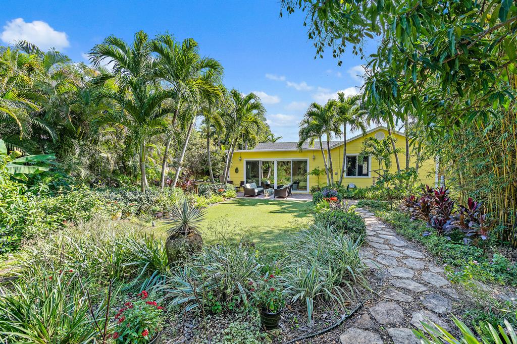 Fabulous east-of-Olive Ave. coastal cottage charmer. Situated in 'SoSo' on a 11,285 sq. ft. lot just two blocks from the Intracoastal Waterway. Features: open kitchen, original hardwood flooring, natural gas range, tankless water heater, cozy living spaces, extra-large Florida Room, laundry room, loads of storage, a mixture of hurricane panels & impact windows, all Hardie plank siding, brick paved driveway/walkways, storage shed, fenced backyard, gutters, & well-water irrigation. You'll fall in love with the enchanting, tranquil gardens that attract butterflies & birds year-round; featured on Mounts Botanical Garden tour. Located on a quiet street, yet close to everything; beaches, restaurants/shops, downtown, PBI airport, Worth Ave, Rosemary Square, Brightline station, & much more.