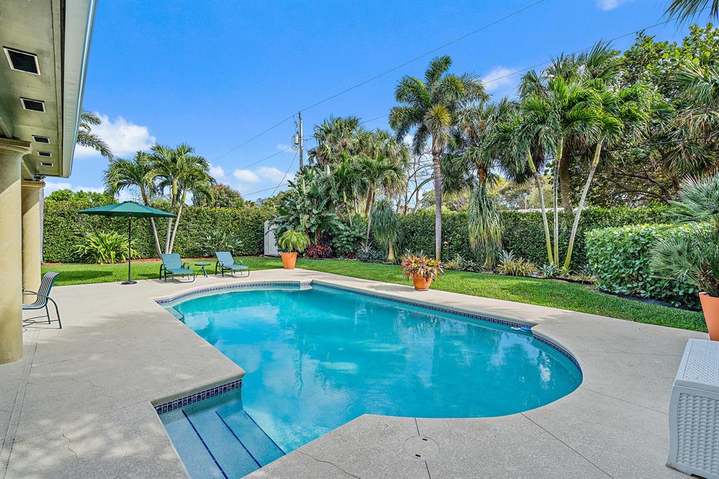 Fantastic east-of-Olive Ave 'SoSo' home on a 10,045 sq. ft. lot. 3 bed/2 bath + den/office. Meticulously maintained inside & out, features include all impact windows/doors, new roof, Canadian maple flooring, 2018 high efficiency AC (ducts just cleaned), security alarm/cameras/Ring doorbell, spacious kitchen with island/bar seating for 6, granite countertops/backsplash, & wood cabinets, stainless steel appliances, laundry room w/ high efficiency washer/dryer, huge fenced/private backyard with covered patio, storage shed, drip irrigation & a swimming pool. Wonderful location just a short walk to the Intracoastal Waterway/Flagler Drive. Minutes to everywhere you want to be; downtown WPB, Palm Beach/Worth Ave., world-class dining/shopping, Rosemary Square, PBI airport, Brightline station, ETC