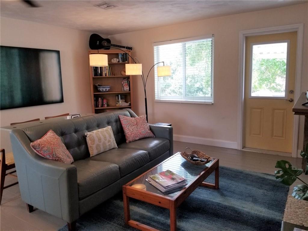 Unique layout offers common entry to 2/1 apartment (up) with balcony - set up as vacation rental called The Squirrel Upstairs. Downstairs has a huge bedroom (20x14), walk-in closet, large bathroom & Terrazzo floors. Good size living room & dining area combo with wood laminate flooring (Terrazzo under). The oversized 2-car garage (24x22) has a laundry room and 1/2 bath. There is an 'office' on the side of garage with flat roof replaced in 2013. Updated in past few years: Impact glass, doors & Broten garage, 2 a/c units (up & down), elec panels, 2 water heaters, fans, lighting, garage 1/2 bath, washing machine, stove, interior/exterior paint & tile roof got elastomeric coating 2019. Just minutes from everything - beach, airport, downtown, Whole Foods/Publix, Tap 42, I-95 & 595, Harbor Shops