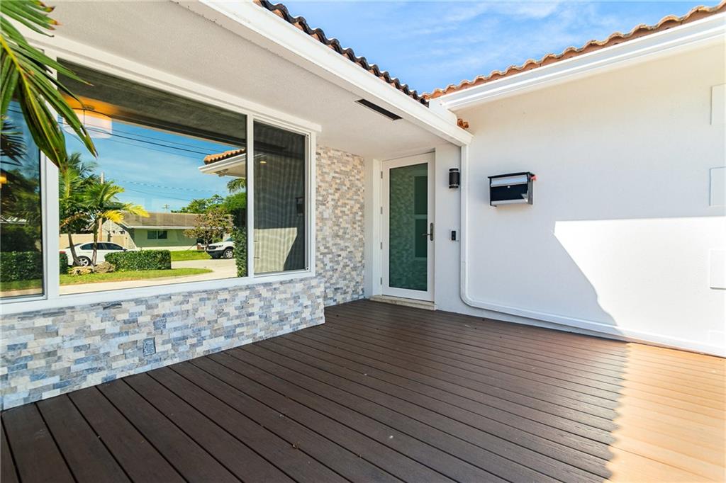 Stunning 3 bed 2 bath waterfront home, 2 fixed bridges large enough to fit 30'+ center console boats. This home features a secluded luxury backyard including a fully automated champagne spa/pool combination that can be controlled from your phone. Other features include impact windows and doors, new kitchen with Bosch appliances, generator transfer switch, 24/7 security camera system, Sonos outdoor speaker system, fully tiled 2 car garage with lots of storage cabinets, seawall reinforced by batter pilings and new cap. This property sits on one of the highest elevations found on the water in Fort Lauderdale.
