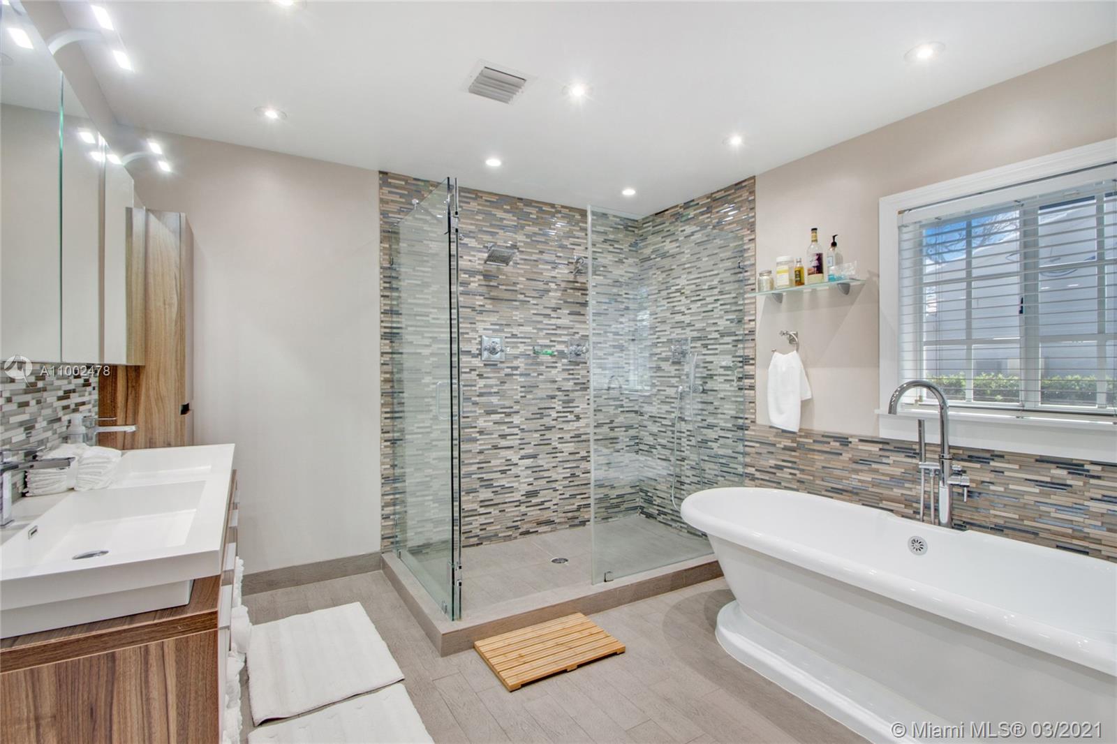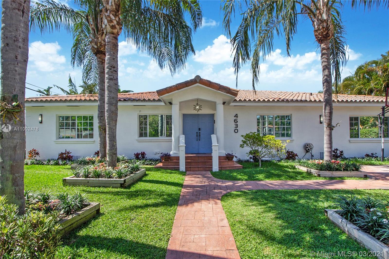 One of a kind large family pool home in desirable Mid Beach. 6 full bedrooms (each has a closet) and 4 updated bathrooms. Master features en suite bathroom w/double shower + sinks, spacious custom made walk-in closet. Marble and wood floors throughout. Massive chef’s kitchen to serve any dietary needs: 3 sinks, 3 refrigerators, gas stove+grill, island seating for 6. Sliding glass doors open to a private oasis outdoor living space featuring large heated pool + covered pergola with living room, three fans + two TV's. Ultimate backyard to enjoy Miami's indoor outdoor lifestyle. Electric car charging station. Impact windows + Shutters. + full-house backup power generator. Walk to A+ schools,Pinetree dog park, Muss Children’s Park, JCC, houses of worship, 41st corridor,3 grocery stores