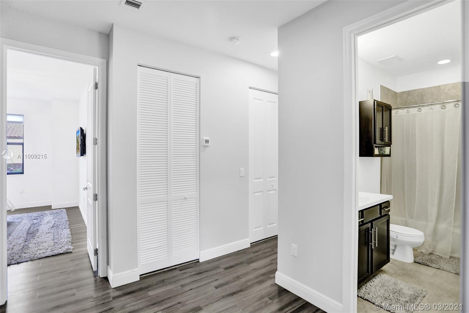 GORGEOUS 3 bedroom, 2.5 bath TURNKEY TOWNHOME in Chapel Grove, west Pembroke Pines! This 2019 home has a brand new feel with all the details to make it feel luxurious with a wide open, spacious living area. Upgraded kitchen with granite, tiled backsplash & stainless appliances, beautiful wood-look tile downstairs & luxury vinyl upstairs. Upstairs has custom closets & is tastefully decorated with accent walls & lighting. This Smart ready home features a one car garage, private backyard space with brick pavers, a Nest doorbell, all impact & convenient auto lock entry. It is a gated community with a pool, spa, fitness center, basketball court & tot lot. Live in one of the newest areas Pines has to offer in an A Rated School District! Showings begin Sunday, March 7, at noon. A must see home!