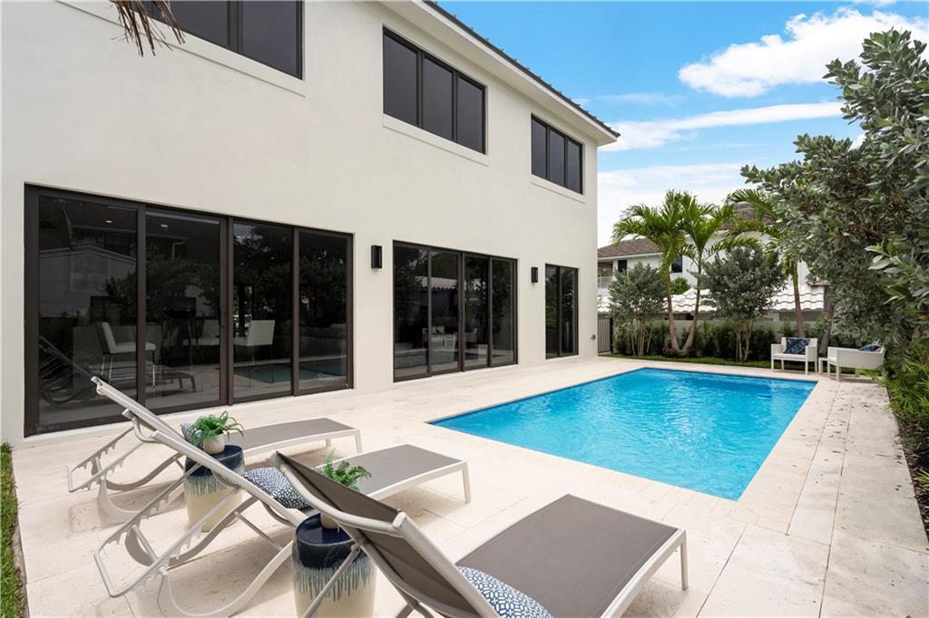 NEW CONSTRUCTION | IMMEDIATE OCCUPANCY | This transitional contemporary home is conducive to today's lifestyle with a luminous open floor plan, volume ceilings & multiple doorways blending indoor & outdoor living spaces. The outstanding curb appeal leads to an open foyer overlooking the dining area, great rm, pool & patio area. The culinary kitchen features upgraded appliances, tremendous storage & oversized counter space ideal for entertaining. The open staircase is framed with a glass enclosure & wide wood flooring throughout the 2nd floor. The spacious primary suite boasts 2 walk-in closets & lavish bathrm. Additional details include a 1st floor bedrm or home office & 2nd floor laundry. Mins to the Lauderdale Yacht Club, shopping, restaurants & gyms. Sq ft from developer