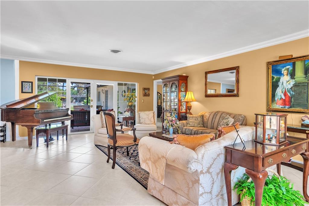 This meticulously maintained home boasts timeless elegance, with upgrades and detailed highlights in every area. The gorgeous waterfront view overlooking the heated saltwater pool and spa provides year round enjoyment. Traditional in décor this 3/2 ranch is adaptable to any design style. This home located within the guard gated Eldorado Estates, is sure to exceed your expectations. Impact windows, plantation shutters & remote controlled shades, tankless hot water heater, & 4000 ton AC with electronic air filtration, are just a few of the features you will find on the attached amenities list. There’s even a 240 Volt outlet for your electric car. Call me for your private tour of this lovely home. Showings appointments to begin on 3/10/21