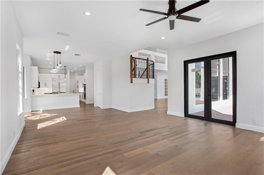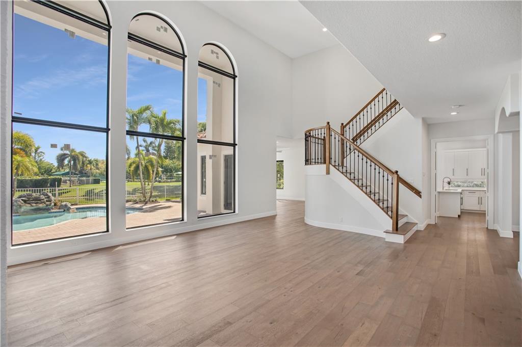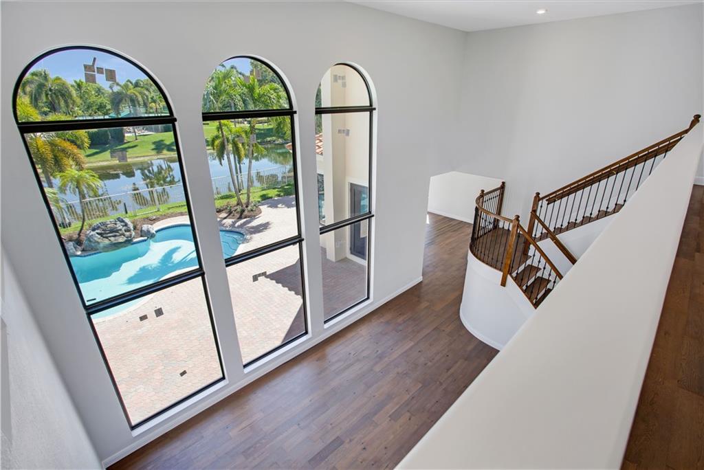 Uniquely elegant "Modern Farmhouse" style home on perfect waterfront lot with expansive views. One of a kind home in the neighborhood with updates throughout to include impact windows and doors. Gorgeous, ample kitchen with wood flooring throughout the entire home. Fresh interior trim, paint, and more. Spectacular views as you walk into the home with a large patio and pool perfect for entertaining. Home has 5 bedrooms plus office, large loft/den upstairs and 5 full baths. LED lighting throughout, newly installed impact windows and doors. Roof is 5 years old. Perfect for a large family or moderate downsizing. Priced to sell. Immediate occupancy. Includes a home warranty- easy to show! Won't last!