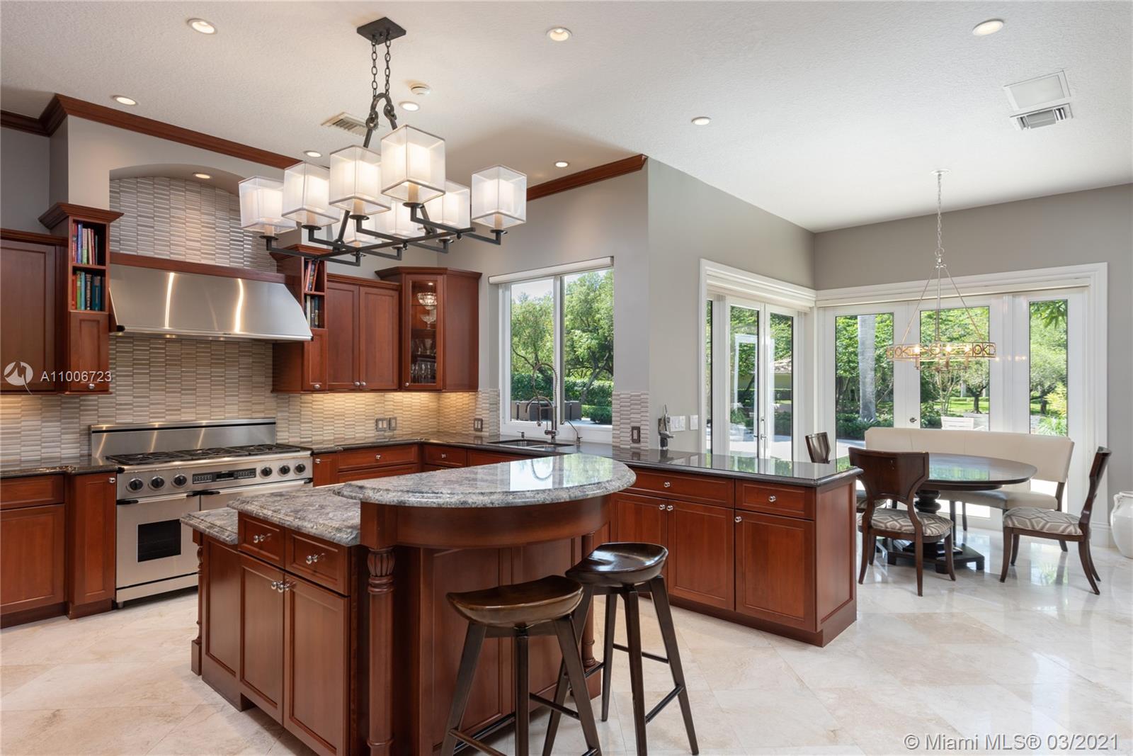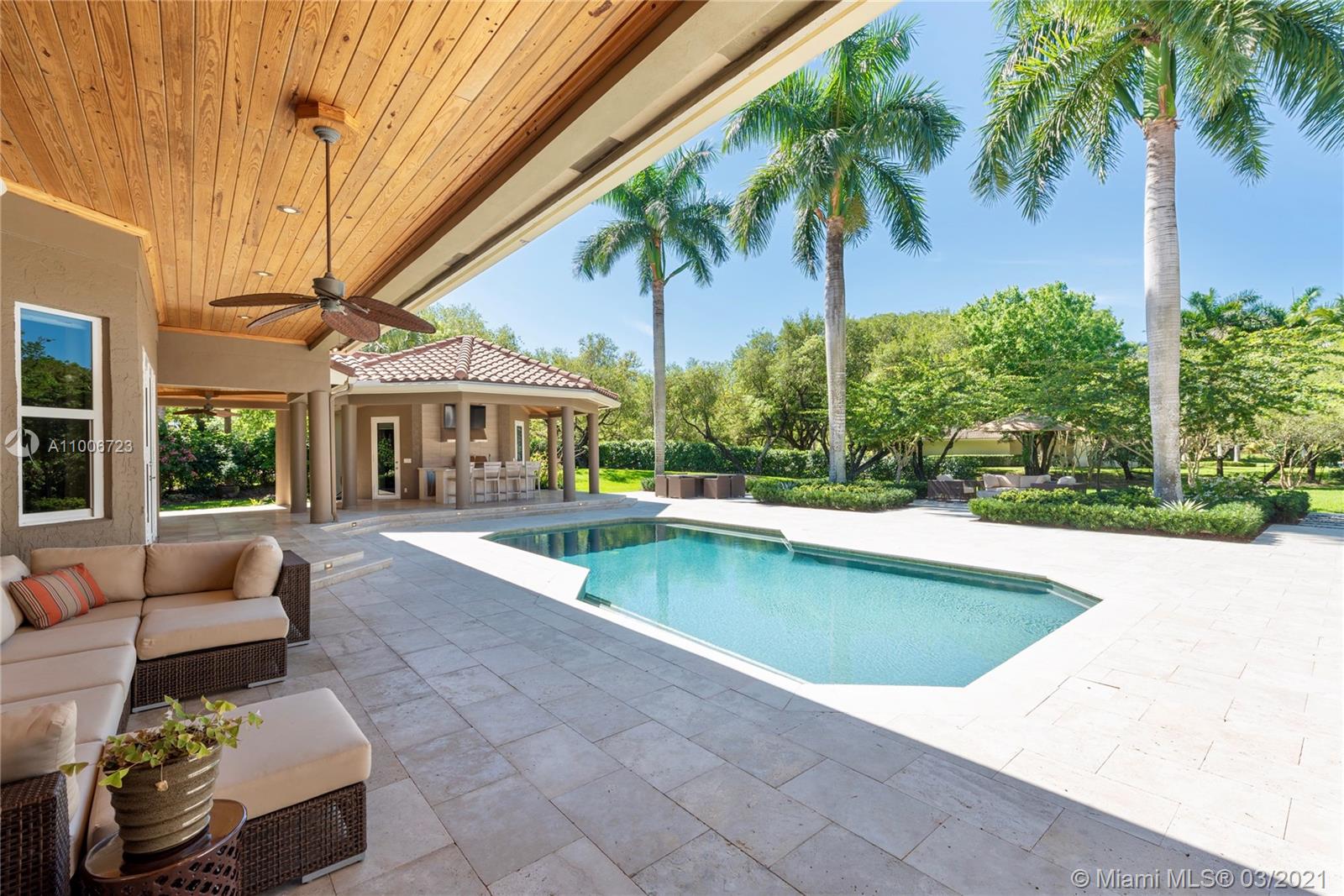 This elegant home is situated in the idyllic surroundings of Windmill Ranch Estates and sits perfectly on a 1.78 acre private lot. As you enter the home, it enchants you with views through the large picturesque windows overlooking the beautiful landscaped grounds and pool area. The expansive master suite features a sitting area and an impressive walk-in closet with island and onyx counter-tops. His and hers baths make this master a true gem. The gourmet kitchen features top of line appliances and granite counter-tops. The main residence has 4 bedrooms, 5.5 baths with office, game room, bulter's pantry and a 1 bed 1 bath guest house with summer kitchen. Custom oversized garage fits up to 6 cars with a lift. An entertainer's paradise in one of the most coveted communities in Weston!