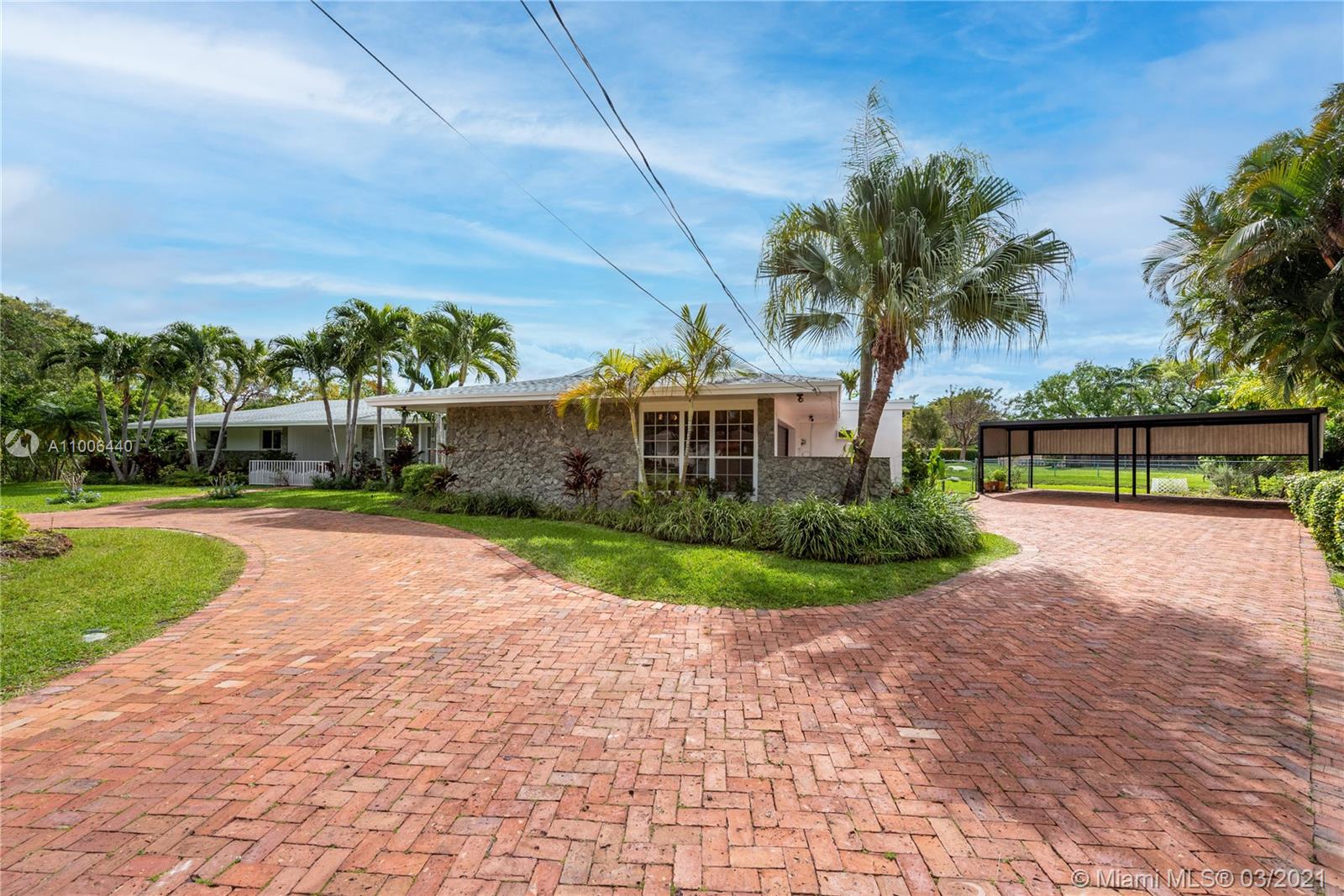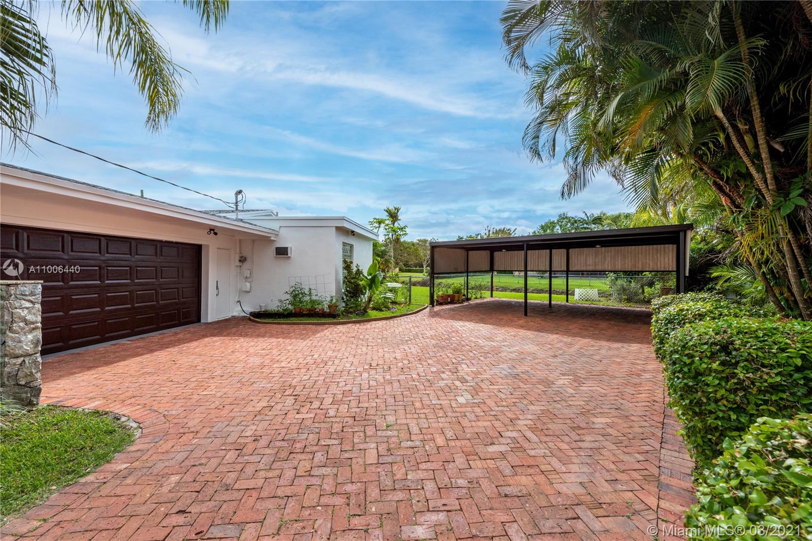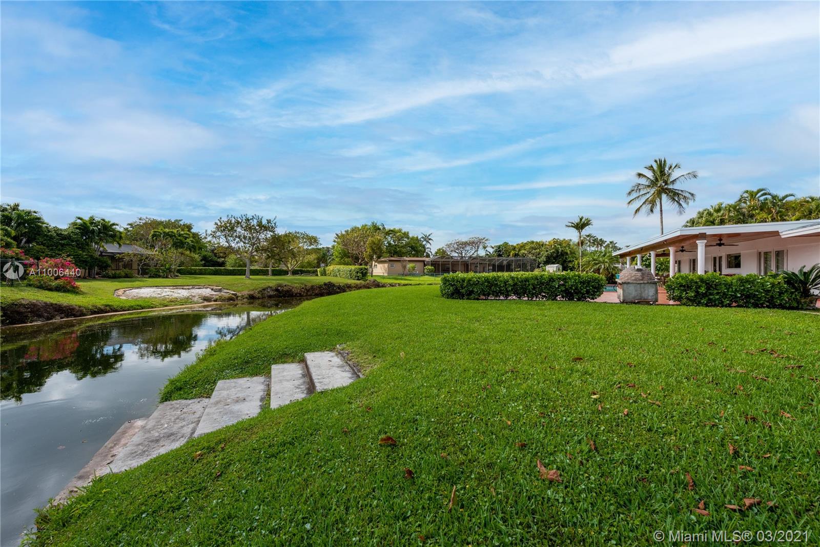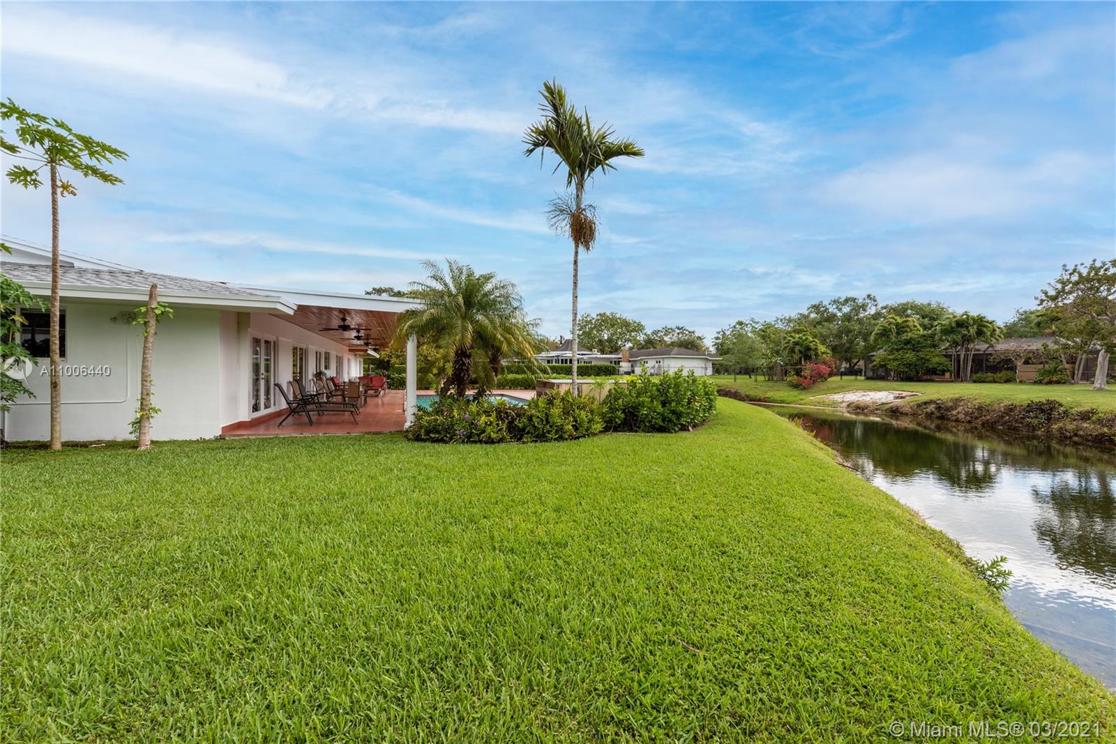 This is the house you have been waiting for! Large 4 bedroom /3 bath home + office/den and staff quarters in idyllic Palmetto Island. One of Pinecrest’s most sought after neighborhoods, known for its sense of community, friendly walkable streets, & navigable canals. The home sits on a half-acre lot w/ 22,798 sqft surrounded by water on either side. Features include new roof, impact glass windows, new tankless water heater and HVAC UV purifier. Split bedroom floorplan w/ foyer entry, formal living and dining rooms. Large gourmet kitchen and adjacent family room open to the outdoor spaces where you can relax on the covered terrace and enjoy the saline swimming pool. There is also a large pantry with separate laundry room. Brick-paved circular driveway with 2-car garage and 2-car carport.