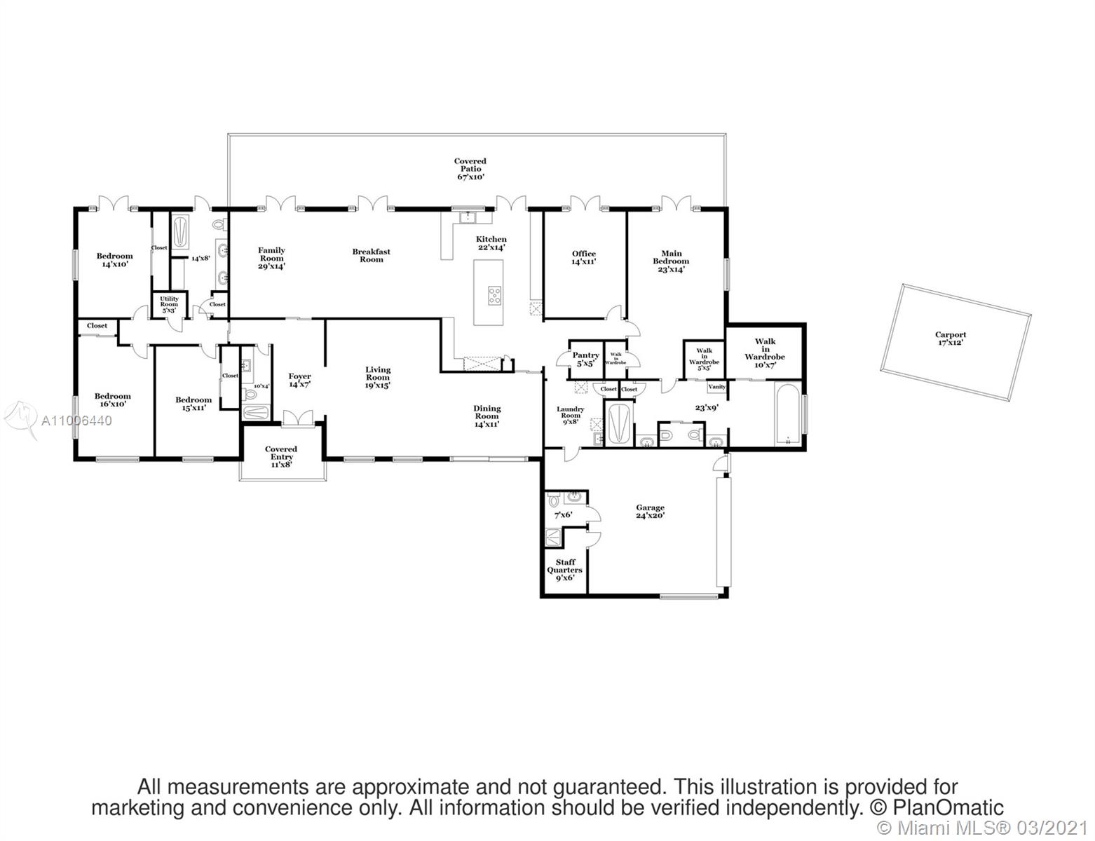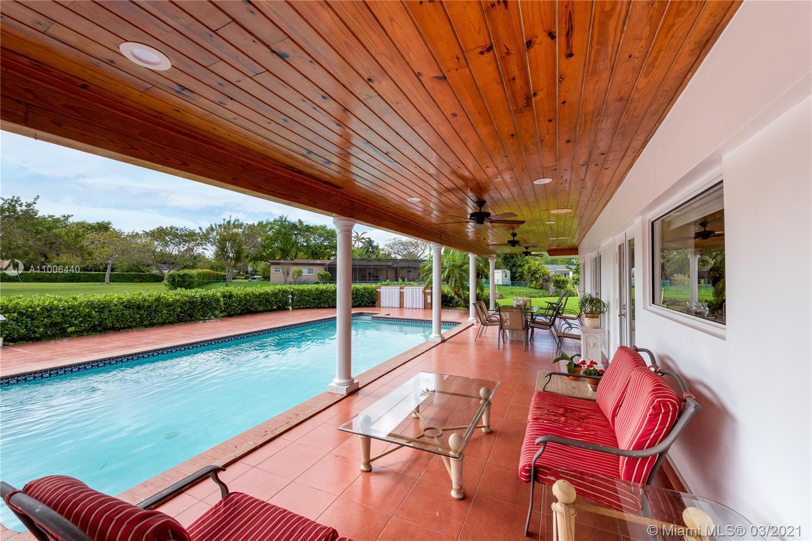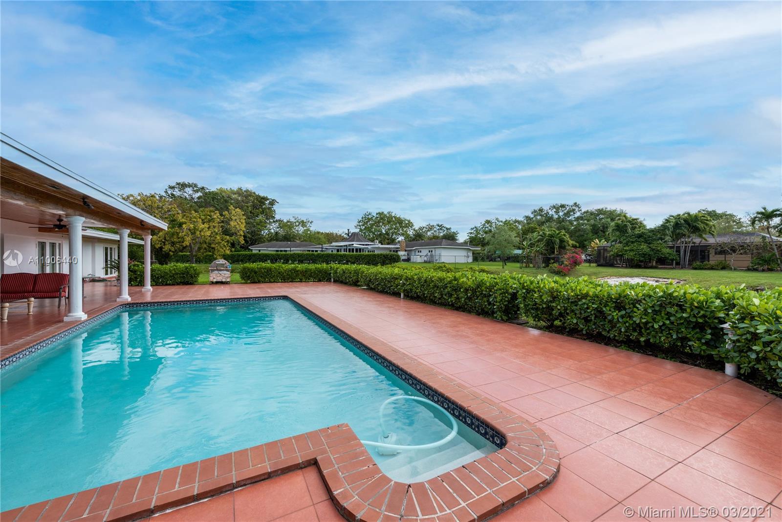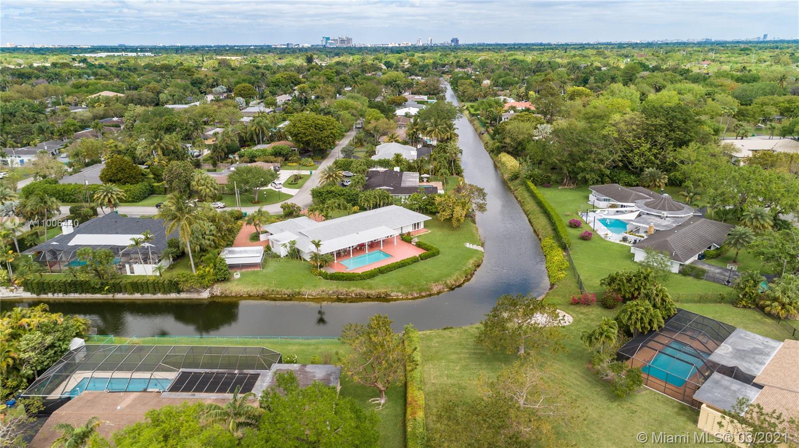 This is the house you have been waiting for! Large 4 bedroom /3 bath home + office/den and staff quarters in idyllic Palmetto Island. One of Pinecrest’s most sought after neighborhoods, known for its sense of community, friendly walkable streets, & navigable canals. The home sits on a half-acre lot w/ 22,798 sqft surrounded by water on either side. Features include new roof, impact glass windows, new tankless water heater and HVAC UV purifier. Split bedroom floorplan w/ foyer entry, formal living and dining rooms. Large gourmet kitchen and adjacent family room open to the outdoor spaces where you can relax on the covered terrace and enjoy the saline swimming pool. There is also a large pantry with separate laundry room. Brick-paved circular driveway with 2-car garage and 2-car carport.