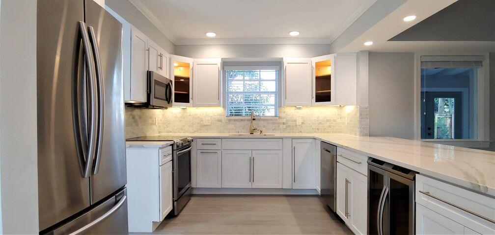Extensively renovated historic home located only steps away from the intracoastal waterway and Antique Row in the coveted 33405 area code. Completely move-in ready with A/C, hot water heater, plumbing, electrical, drywall and insulation all recently replaced and updated, plus a newer roof and hurricane impact windows and doors added throughout the home. Featuring 3 bedrooms, 2 baths plus a bonus den/office, solid brick construction, vaulted living room ceilings, electric fireplace, storage shed, and stunning open kitchen and renovated bathrooms with quartz countertops and marble showers. All situated on a sizable lot with a spacious, private backyard with plenty of room for a pool or addition/guest cottage.