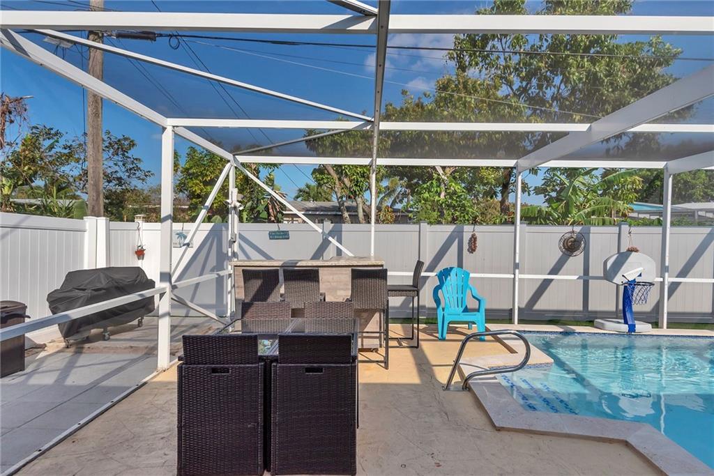 This beautiful 3/2 house has been upgraded. Impact doors, accordion shutters on all winddowns. Pool was remodeled resurfaced , new 6 foot fence around the house. Bathrooms has been remodeled. New ac unit (3 years old) Outside bar was remodeled, pavers was laid down. New light fixtures, garage door was changed 3 years ago. New electrical box, new tile floors, new doors inside and new window treatments. Contact Gus Bergamini for a private tour.