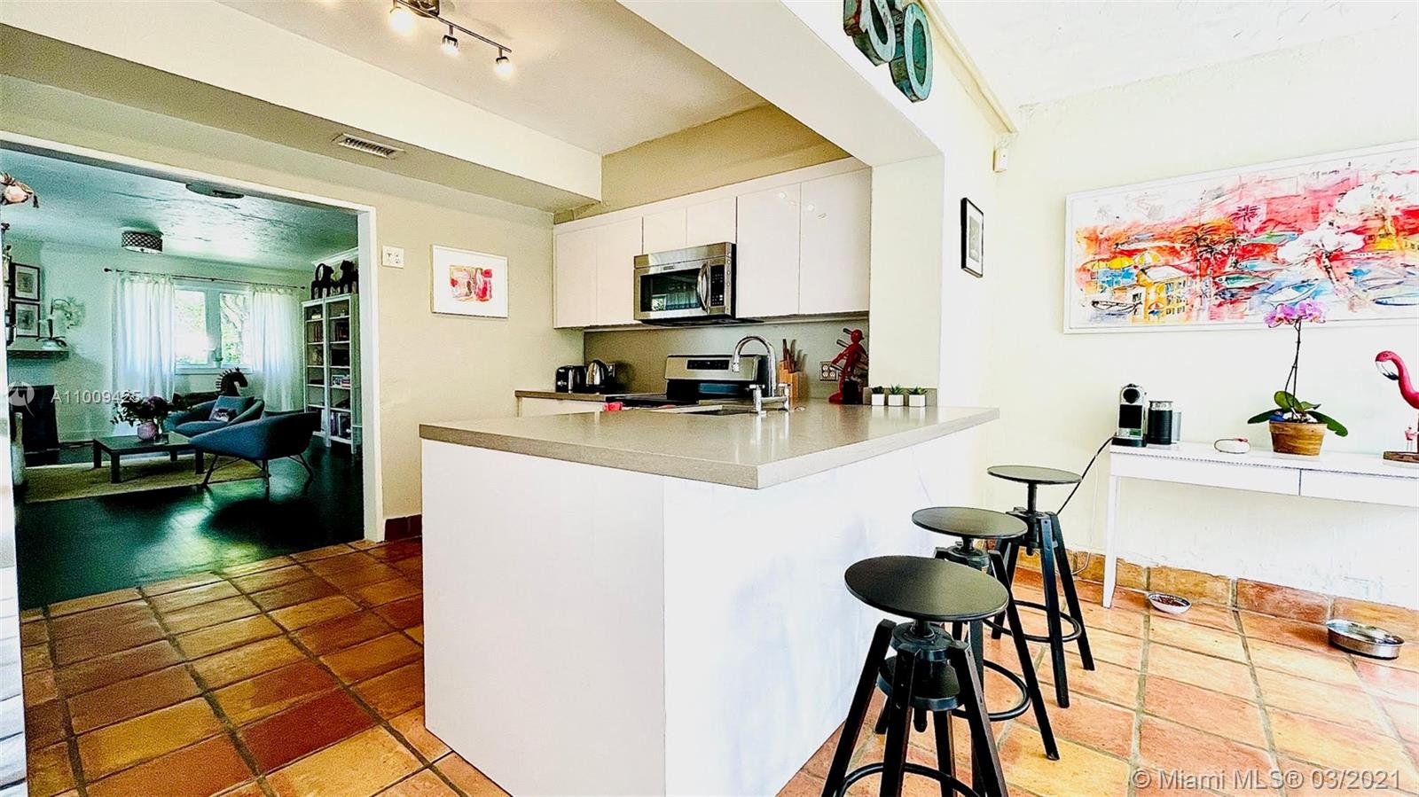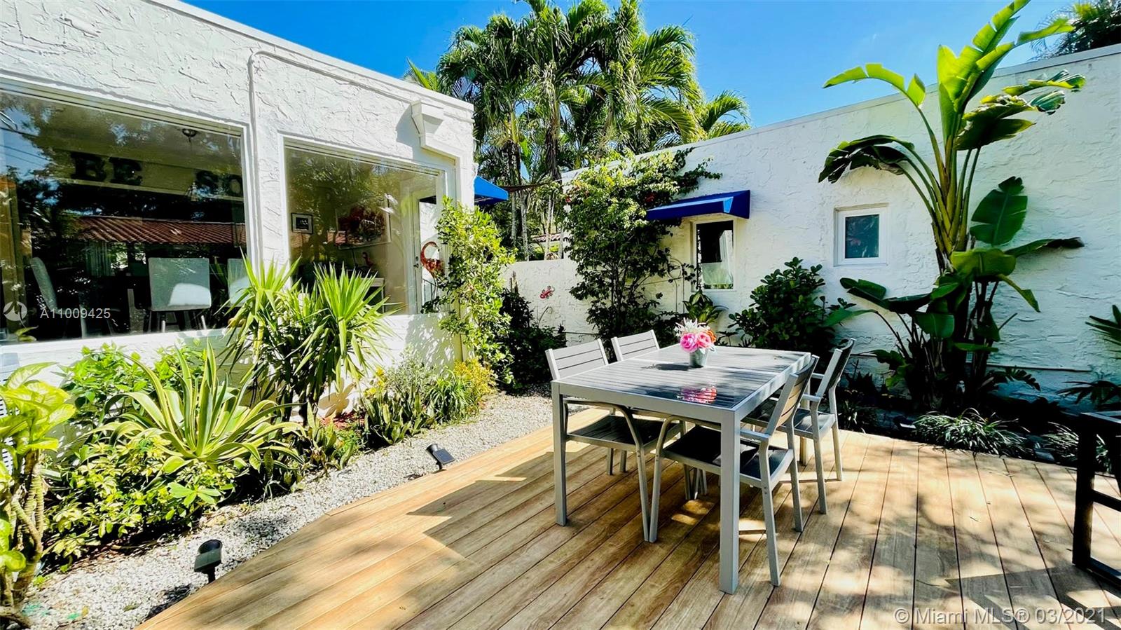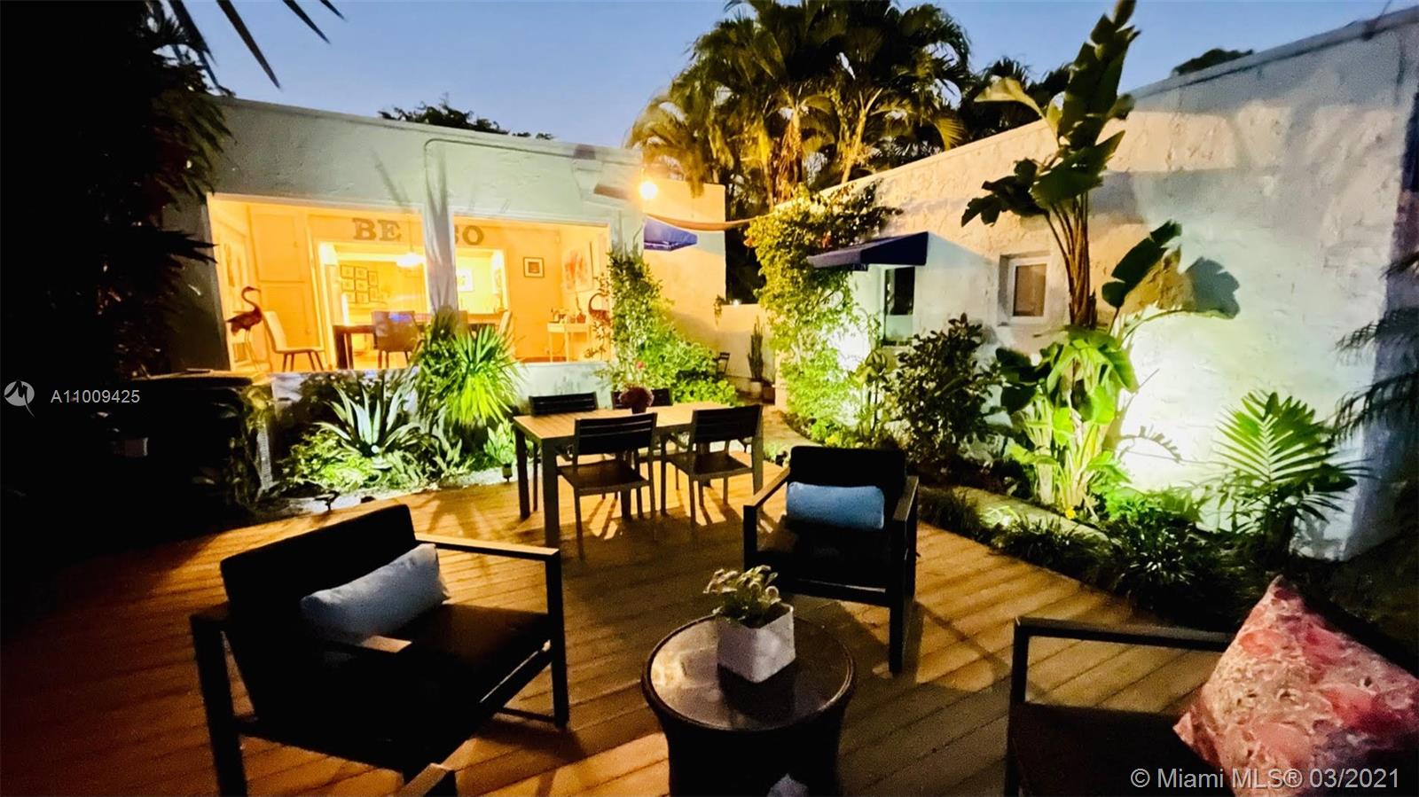 Very charming house located on a very quite tree lined street in Coral Gables. Main house features 2 bedrooms and one bathroom, open new remodeled kitchen with new appliances. The light filled dining room is surrounded with large windows overlooking the patio area and garden. The studio/efficiency has its own entrance and features a full bathroom and kitchen. This house has been meticulously maintain by current owner, kitchen and bathroom have been remodeled, new AC unit in the studio and a beautiful deck has been built to accommodate great outdoor gatherings. All windows and doors have been upgraded to Hurricane grade. This beautiful house is located near the Granada Golf course and The Country Club, great schools and a few minutes from the lively Coral Gables downtown.