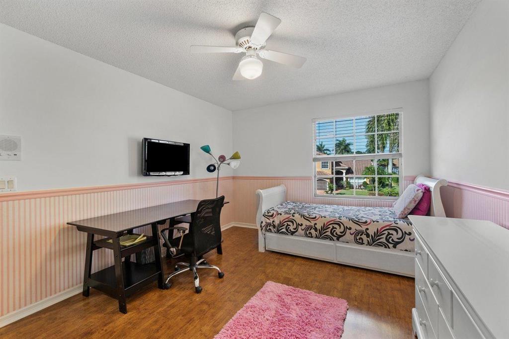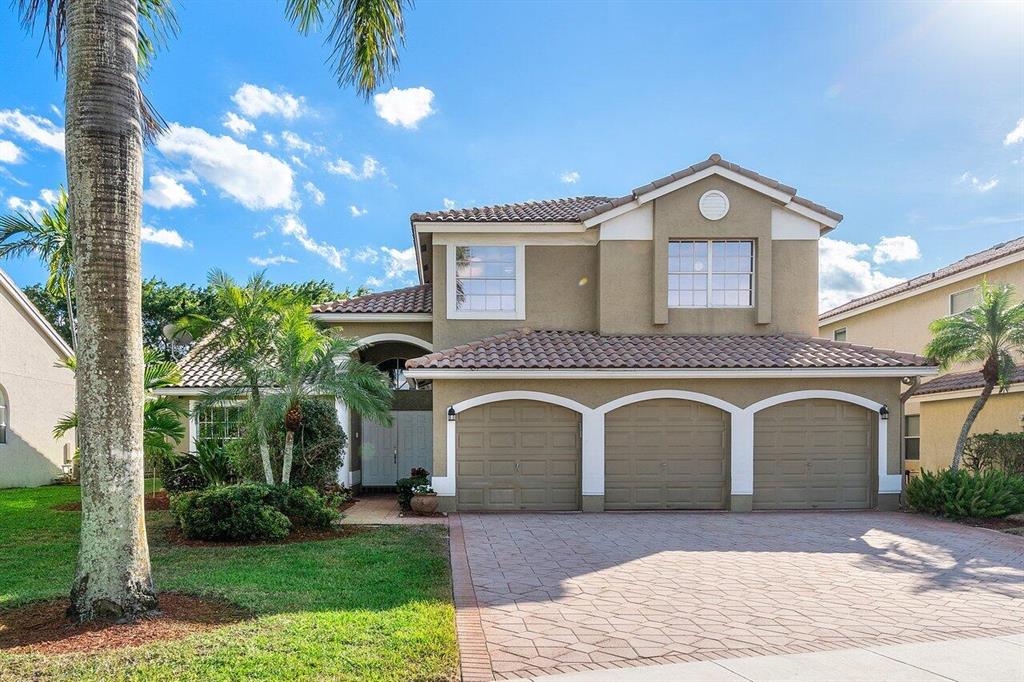 Meticulously maintained 4 bedroom / 3 bath pool home plus bonus room is located just off a quiet cul-de-sac. Extra room perfect for a home office, theatre, playroom, gym or 5th bedroom. Very desirable Mar A Lago model features guest bedroom and full bath downstairs, large master suite upstairs with balcony overlooking pool and patio plus two additional bedrooms up. Great home for entertaining. Kitchen offers a spacious eating area overlooking the family room. A/C 2020, pool pump 2019, dishwasher 2019, refrigerator 2018, water heater 2017 and roof is 14 years old. Boca Isles North is a 24 hour guard gated luxury community featuring: resort style pool, exercise room, tennis courts and a tot lot. Zoned for A rated schools!