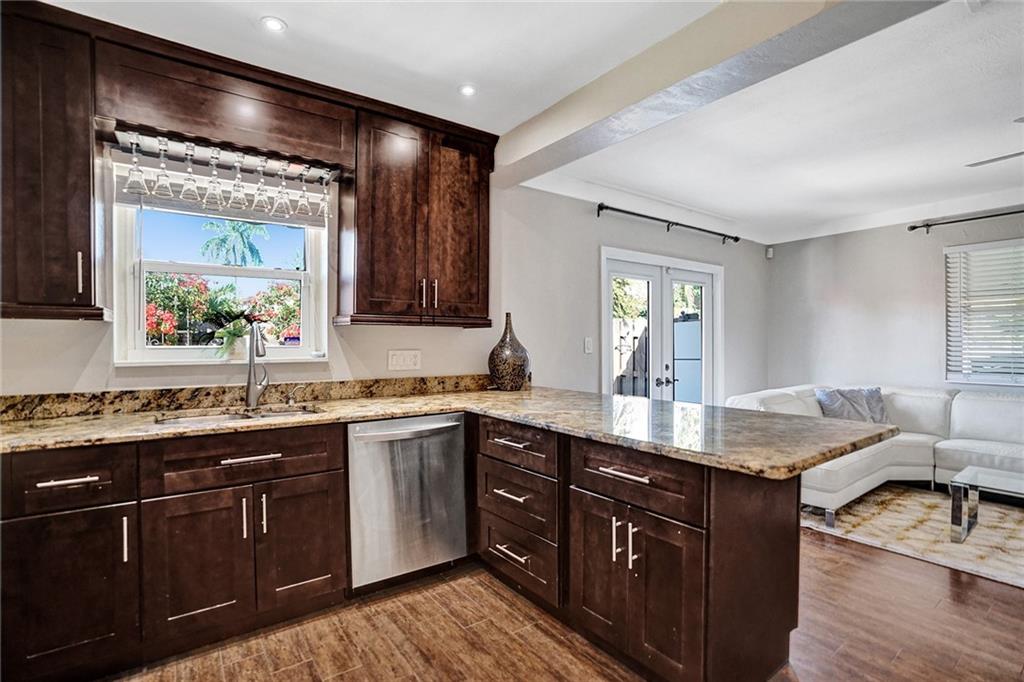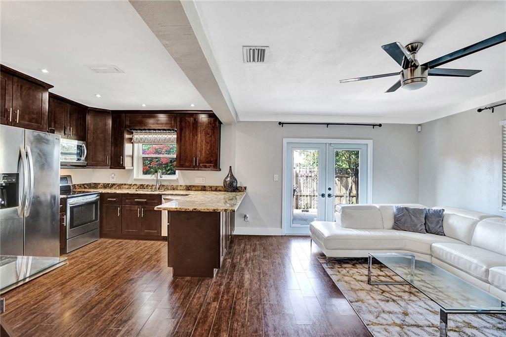 Move In Ready 3 Bedroom 2 Bath Home with your tropical oasis fenced in yard with Hot Tub! Walk into your own private covered front 4 season patio area great for entertaining. Easily can be converted for additional living area sq footage. Interior features updated kitchen with granite counter-tops, soft close cabinets, stainless steel appliances, updated bathrooms and porcelain tile. 3rd Bedroom can be used as an In-Law Suite, or a Rental Income property with it's own private entrance! Newer Roof, Newer AC, Impact Windows, Updated Electrical, and a Shed for extra storage. Room for a pool. Close to Wilton Manors, Downtown and much more!